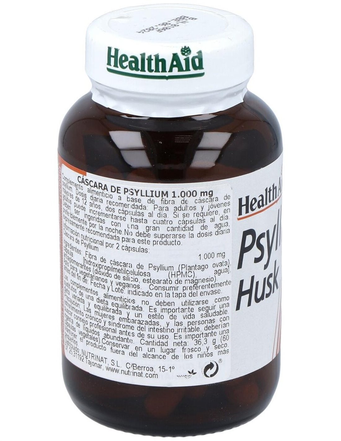 La Fibra De Cascara Psyllium 60Comp. Health Aid es un suplemento de fibra para personas que buscan apoyar su digestión diaria, facilitando el tránsito intestinal gracias a su contenido natural de cáscara de psyllium.
