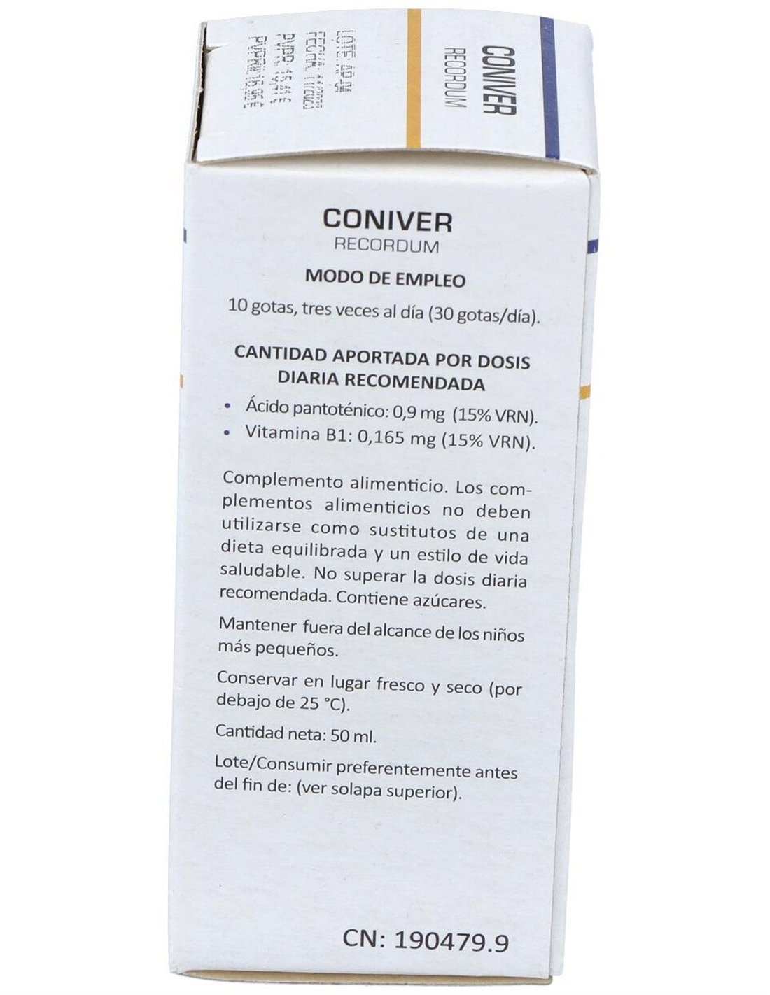 Complemento alimenticio a base de ácido pantoténico y vitamina B1.
