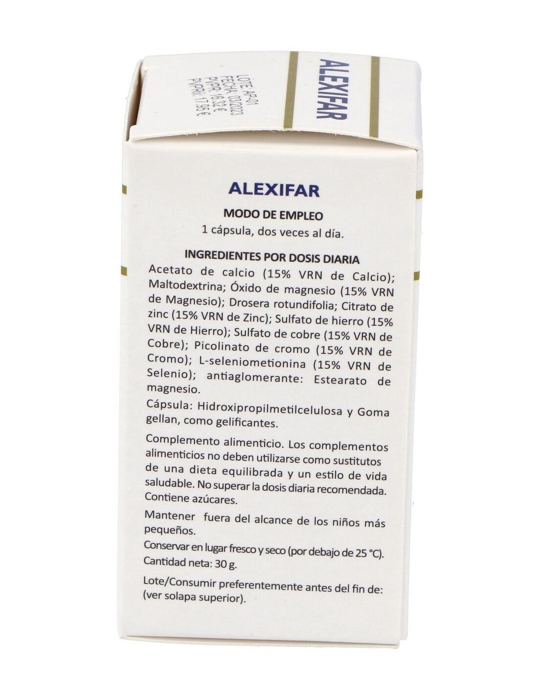 Acetato de calcio (15% VRN de Calcio); Maltodextrina; Óxido de magnesio (15% VRN de Magnesio); Drosera rotundifolia; Citrato de zinc (15% VRN de Zinc); Sulfato de hierro (15% VRN de Hierro); Sulfato de cobre (15% VRN de Cobre); Picolinato de cromo (15% VRN de Cromo); L,seleniometionina (15% VRN de Selenio).