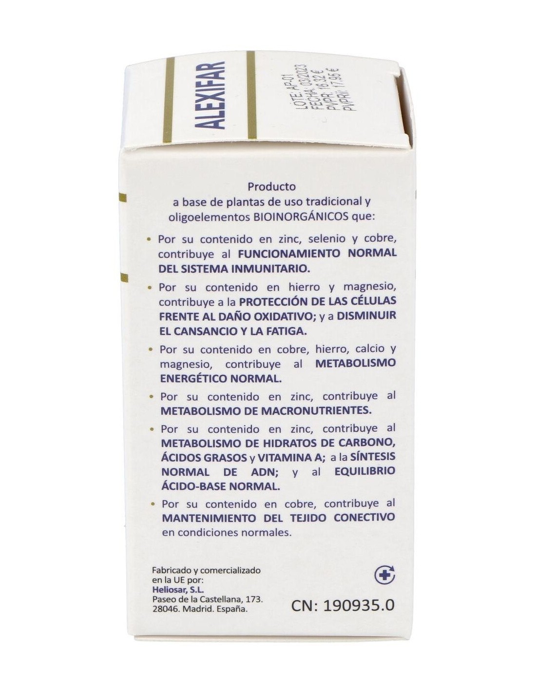 Complemento alimenticio elaborado a base de plantas de uso tradicional y oligoelementos que ayudan a mejorar el funcionamiento del sistema inmunitario, además de contribuir a la protección de las células frente al daño oxidativo y disminuir el cansancio y la fatiga.