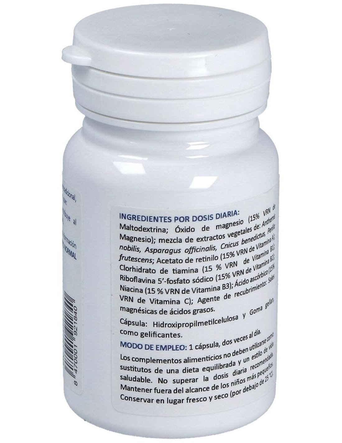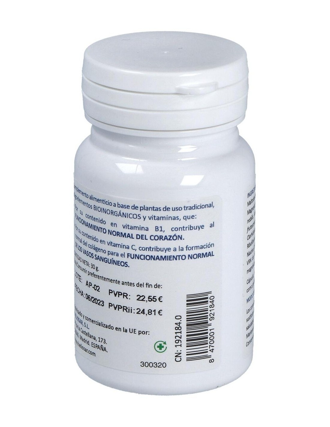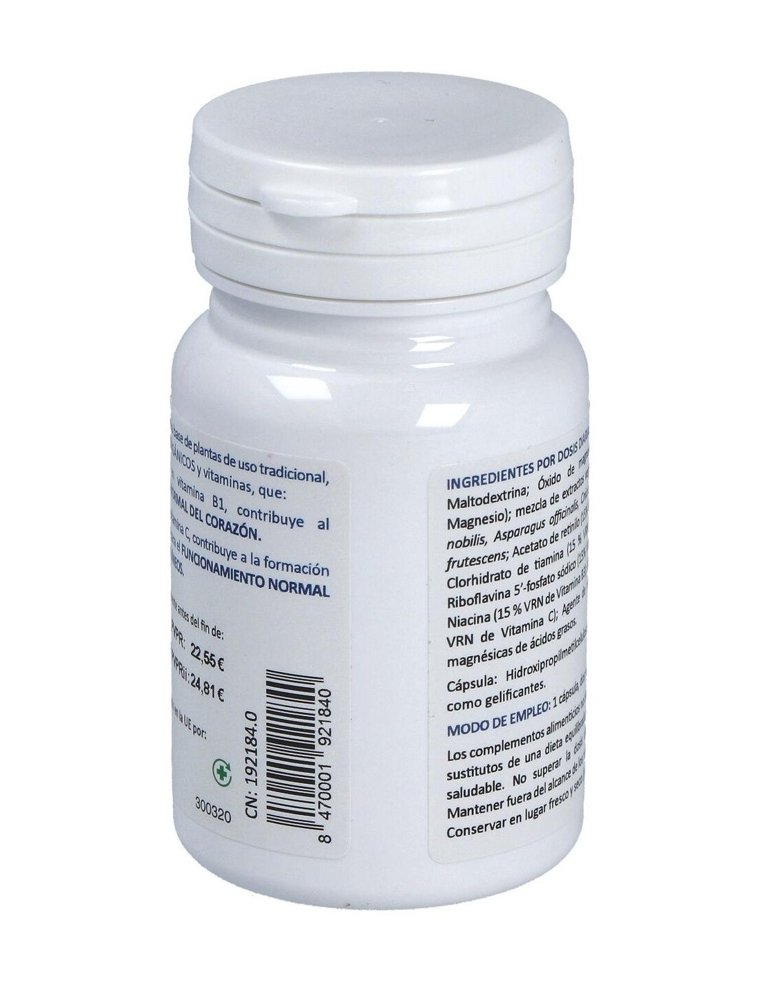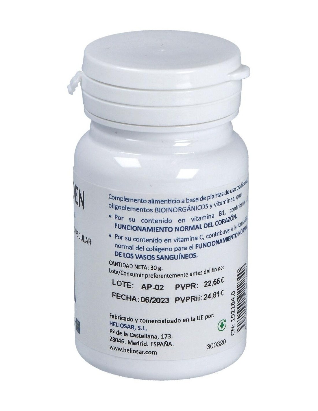 Complemento alimenticio en cápsulas que está especialmente ideado para ayudar al funcionamiento normal del sistema cardiovascular gracias a su compuesto a base de Vitamina B1, y a la formación normal del Colágeno para el funcionamiento normal de los vasos sanguíneos, gracias a la Vitamina C, a la base de plantas de uso tradicional,oligoelementos y Bioinorgánicos.