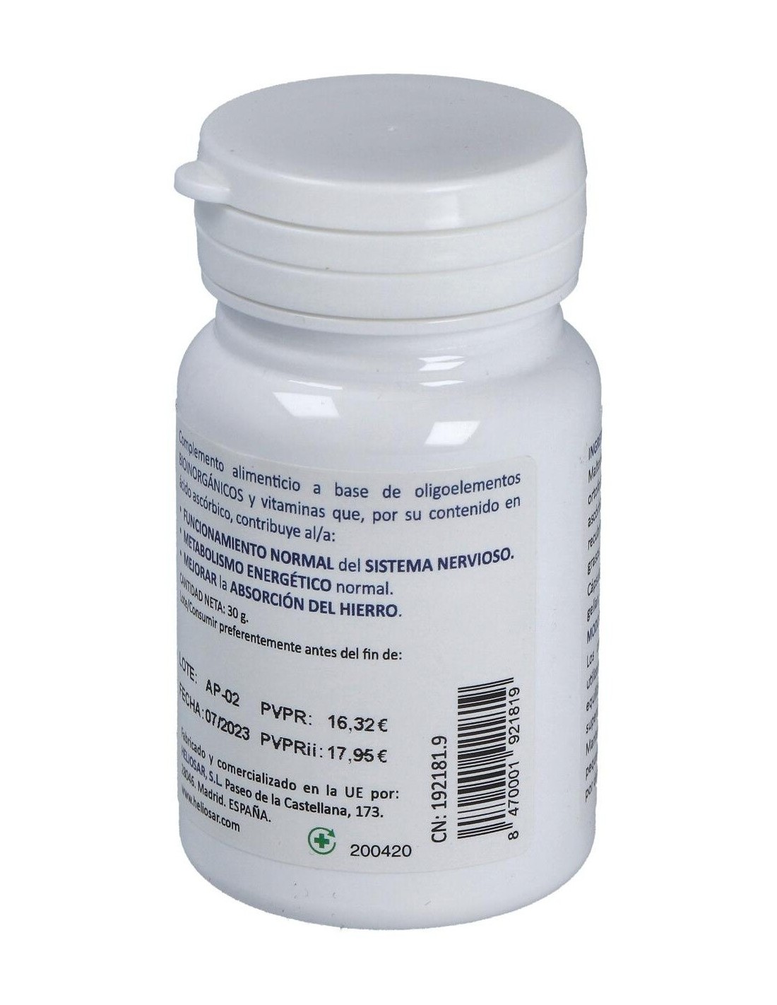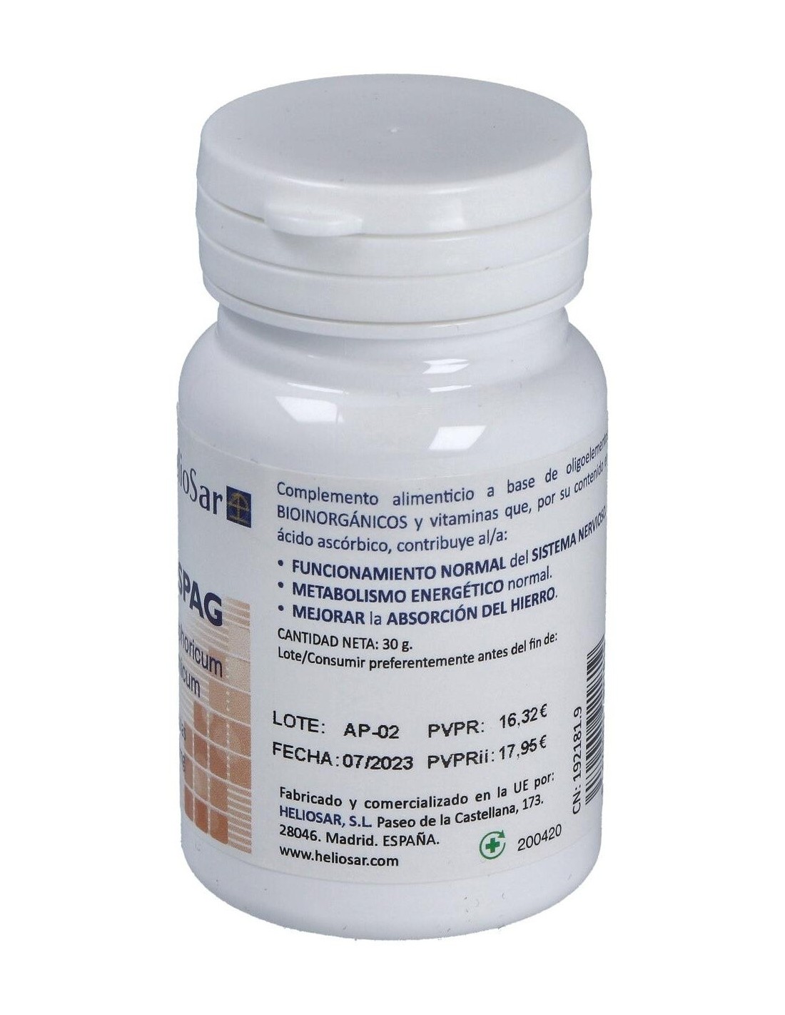 HELIOSARComplemento alimenticio elaborado a partir de sales potásicas, apto para consumo vegetariano, Kosher y Halal. El potasio es un mineral que el cuerpo necesita para funcionar normalmente.