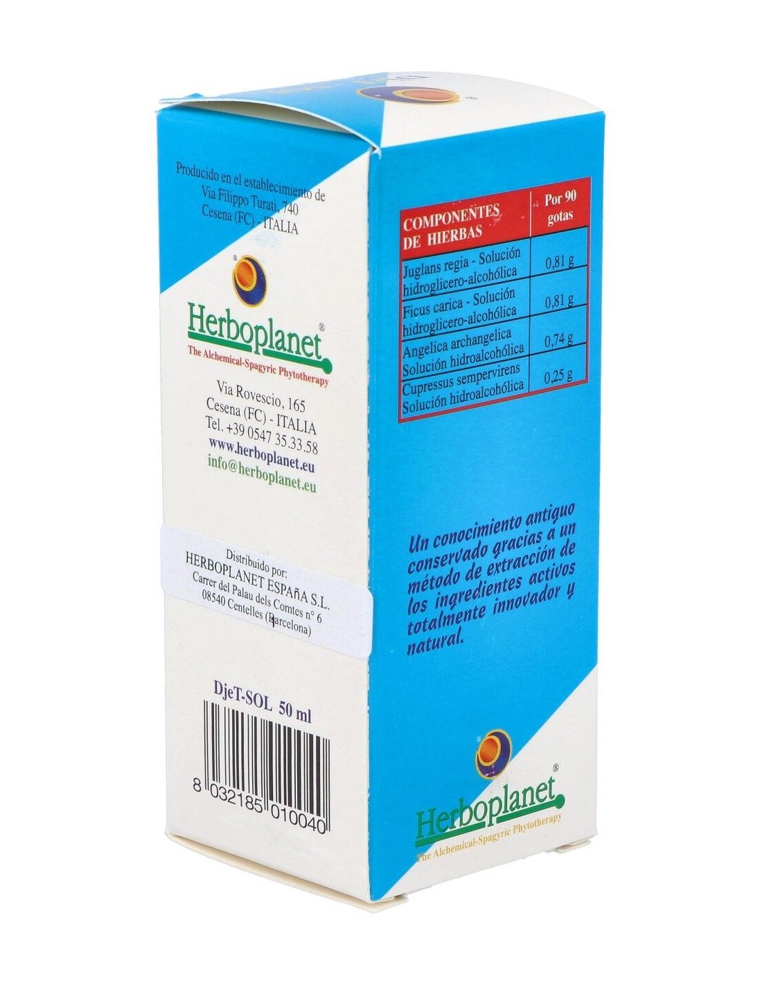 Soluciones hidroglicero-alcohólicas 1/50 de: Nogal común (Juglans regia L.) gemas 0,81 g, Higuera (Ficus carica L.) gemas 0,81 g. Solucion hidroalcohólica 1/5 de Angélica (Angelica archangelica L.) raíz 0,74 g, Ciprés común (Cupressus sempervirens L.) bayas 0,25 g.