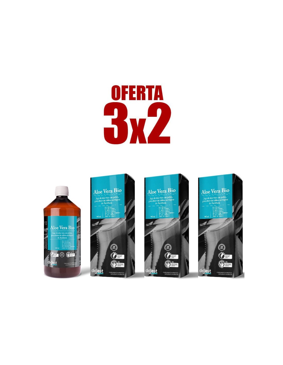 Pack 3x2 Jugo De Aloe Vera 1L. Bio de Herbora