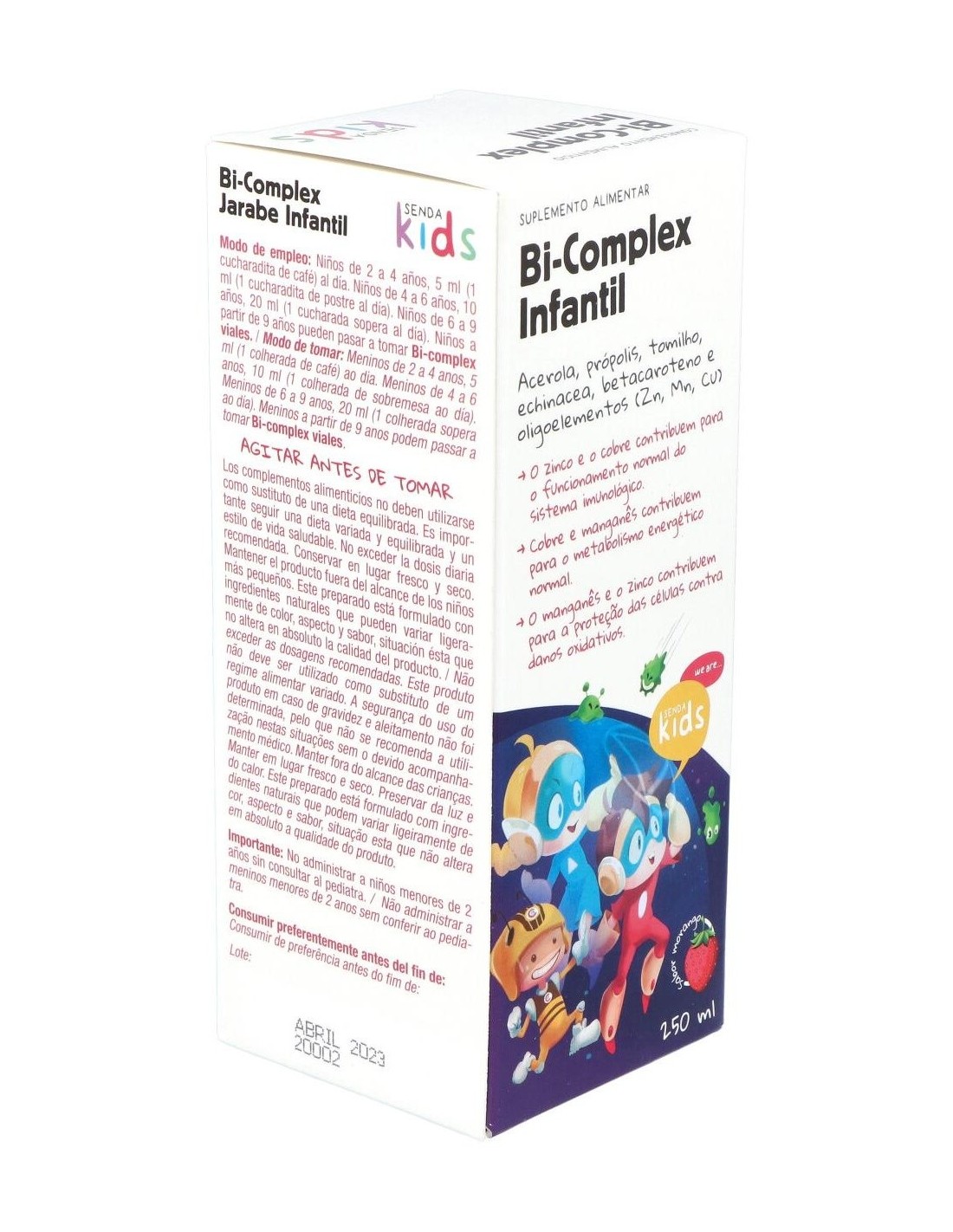 Este complemento ha sido fabricado para evitar las enfermedades infecciosas de los niños, así como los episodios recurrentes de enfermedades comunes de los niños. Por ejemplo, resfriados y gripes, tos de tipo alérgico e inflamaciones debidas a infecciones como la bronquitis, faringitis, amigdalitis, entre otras. Contiene oligoelementos, vitamina C, cobre, zinc, tomillo, propóleo, acerola, manganeso y otros.