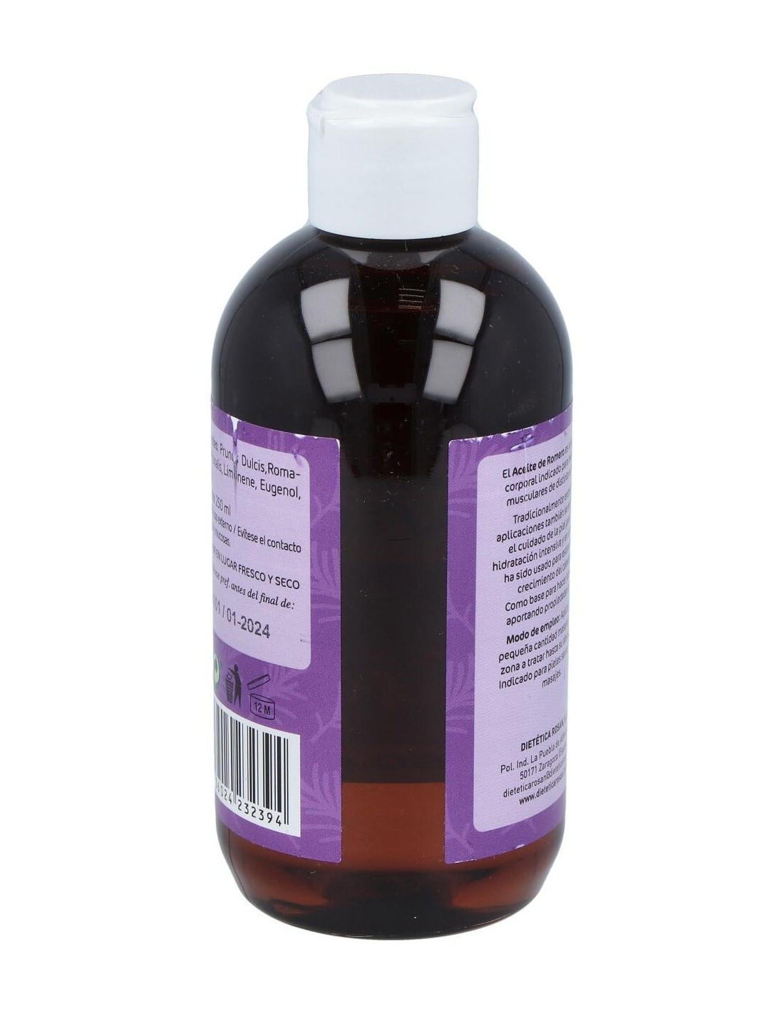 100% aceite de almendras dulces, 100% aceite esencial de romero.