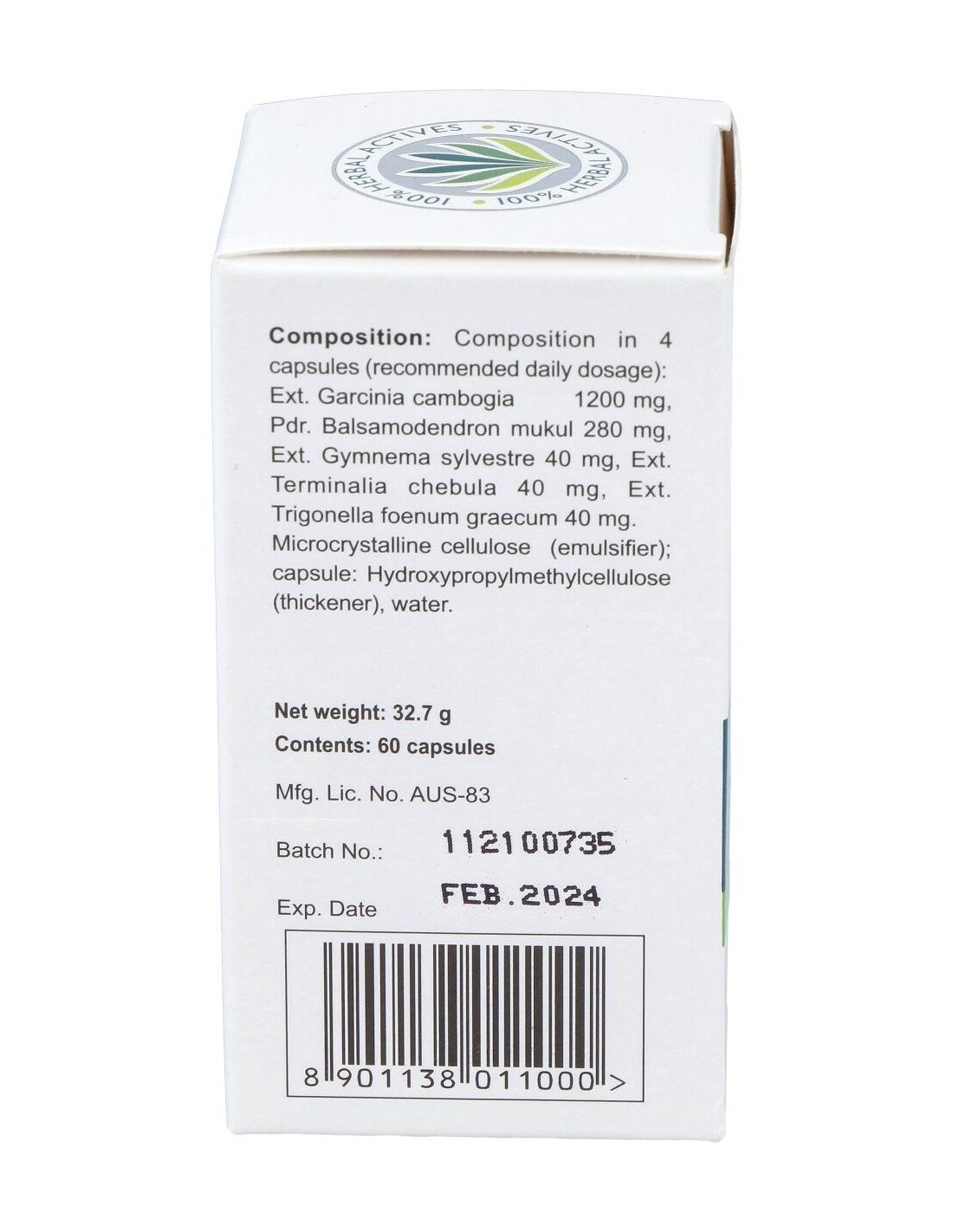 Vrikshamla (Garcinia cambogia), Guggulu (Commiphora wightii), Meshashringi (Gymnema sylvestre), Haritaki (Terminalia chebula), Medhika (Trigonella foenum graecum)