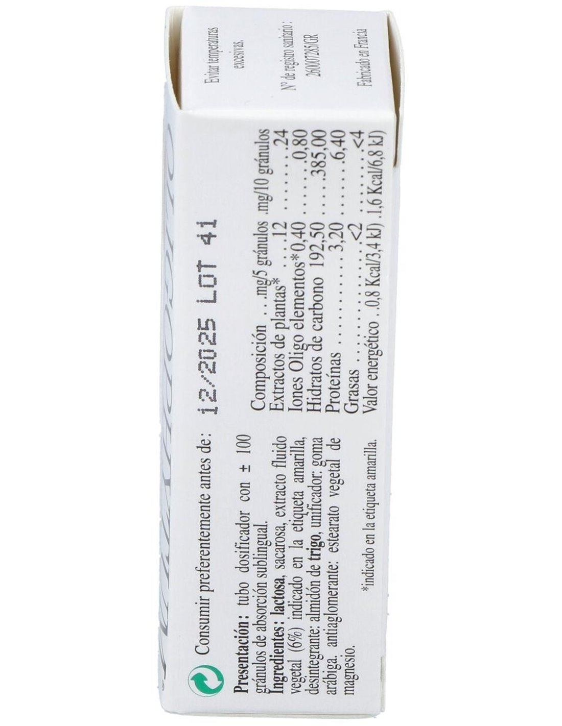 Iones oligo elementos (cobre, oro, plata).....0.40 mg/5 gránulos