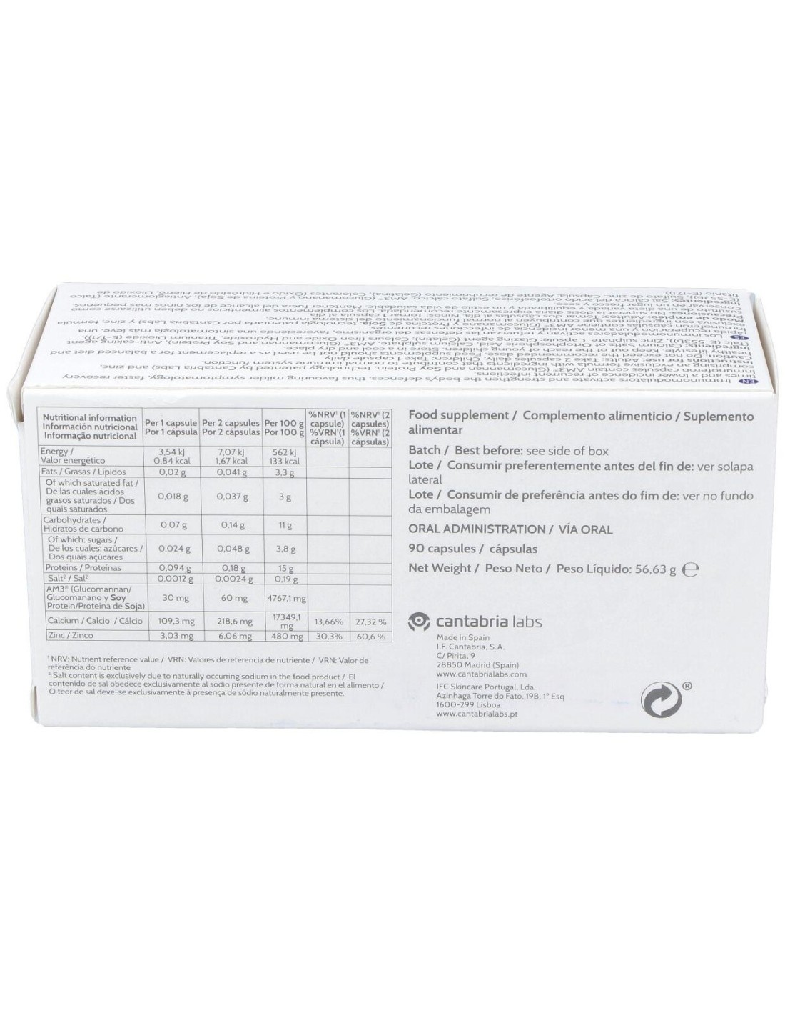 Los complementos alimenticios no deben utilizarse como sustituto de una dieta variada y equilibrada y estilo de vida saludable.