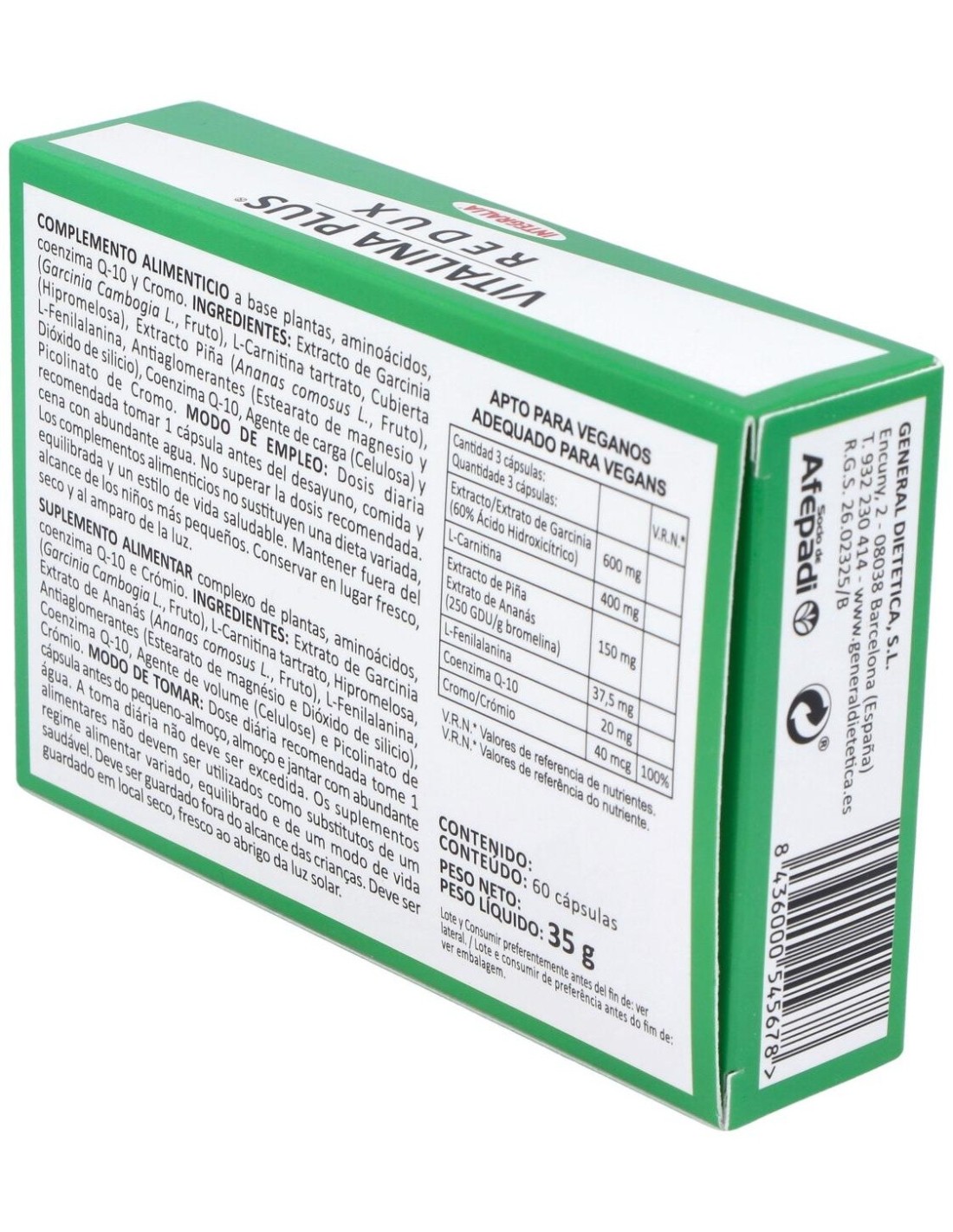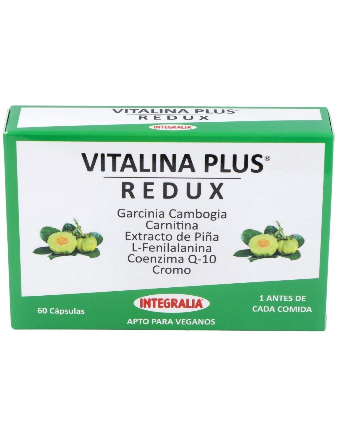 Las cápsulas Vitalina Redux Plus de Integralia son un tipo de complemento alimenticio que ayuda a conseguir un peso saludable gracias a sus ingredientes naturales. El objetivo es saciar el apetito evitando la formación de tejido graso. Además, ayuda a quemar los glúcidos, los lípidos y las proteínas y contrarresta la hipoglucemia.