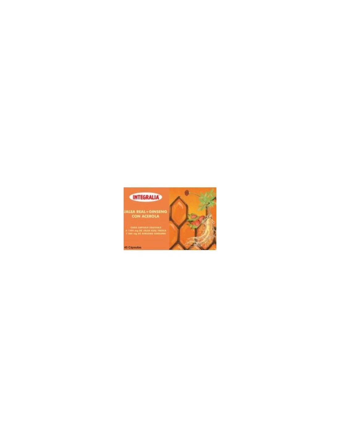 La jalea real de Integralia con gingseng y acerola es un suplemento alimenticio que aporta energía y vitalidad. La jalea real es una secreción natural que producen las abejas y que es fuente de propiedades beneficiosas para el organismo. Entre estas propiedades destacan el aumento de la energía y el refuerzo de las defensas. Integralia con ginseng y jalea real aporta la vitalidad necesaria para afrontar los compromisos diarios. Su combinación de bioflavonoides convierte a la jalea real en un suplemento que previene la falta de energía, la fatiga y el cansancio. La composición de este suplemento refuerza las defensas, gracias a sus propiedades estimulantes. Este producto se ha elaborado cumpliendo con la normativa de la UE, con la máxima calidad y garantía. Se recomienda tomar una cápsula todos los días para disfrutar de sus beneficios.