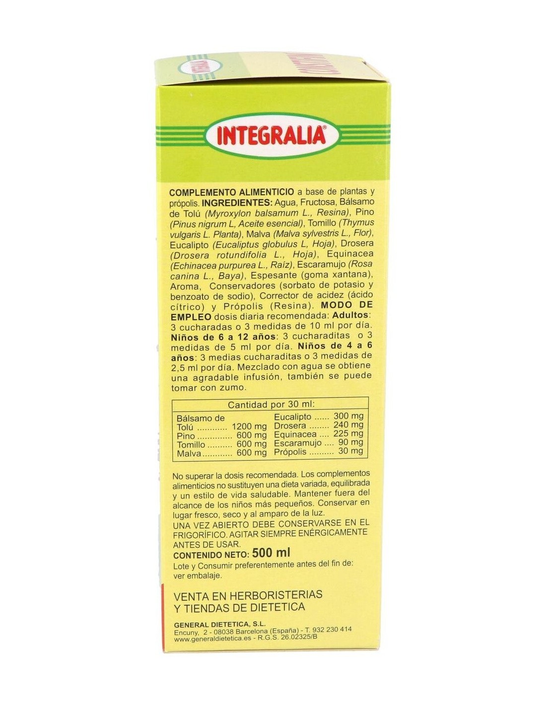 Complemento alimenticio que ayuda a aliviar y mejorar las molestias de las afecciones respiratorias. Formulado con equinácea que contribuye a la función adecuada del sistema inmunitario. Ayuda a mejorar y aliviar las molestias de los resfriados, catarros, incluso la tos. También contiene malva, eucalipto, tomillo, pino, tolú, drosera, própolis y escaramujo.