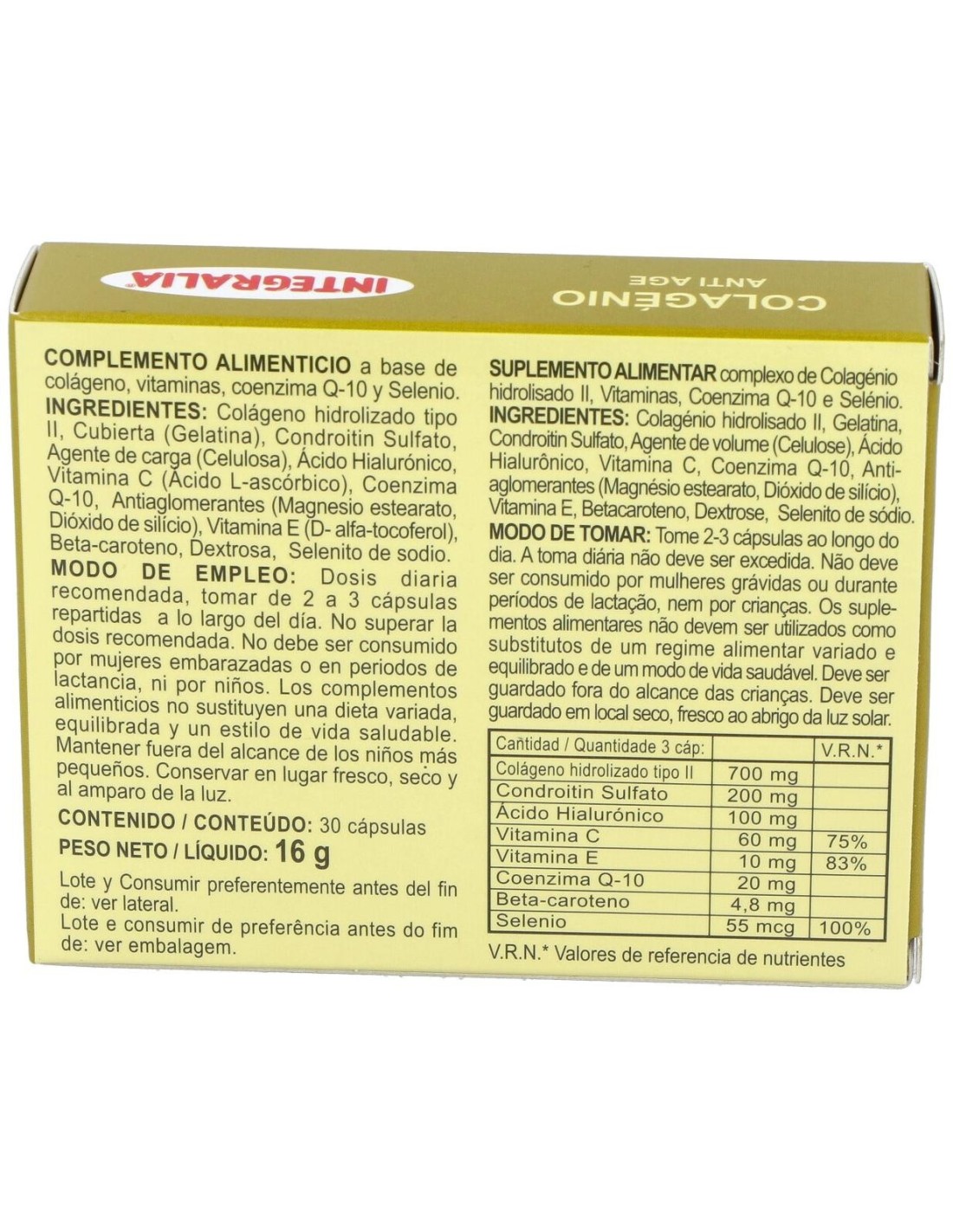 INTEGRALIAEl Colageno Anti Age 30Caps. de Integralia es un suplemento para adultos que busca apoyar la salud de la piel y articulaciones, aportando colágeno hidrolizado para favorecer su mantenimiento y elasticidad.