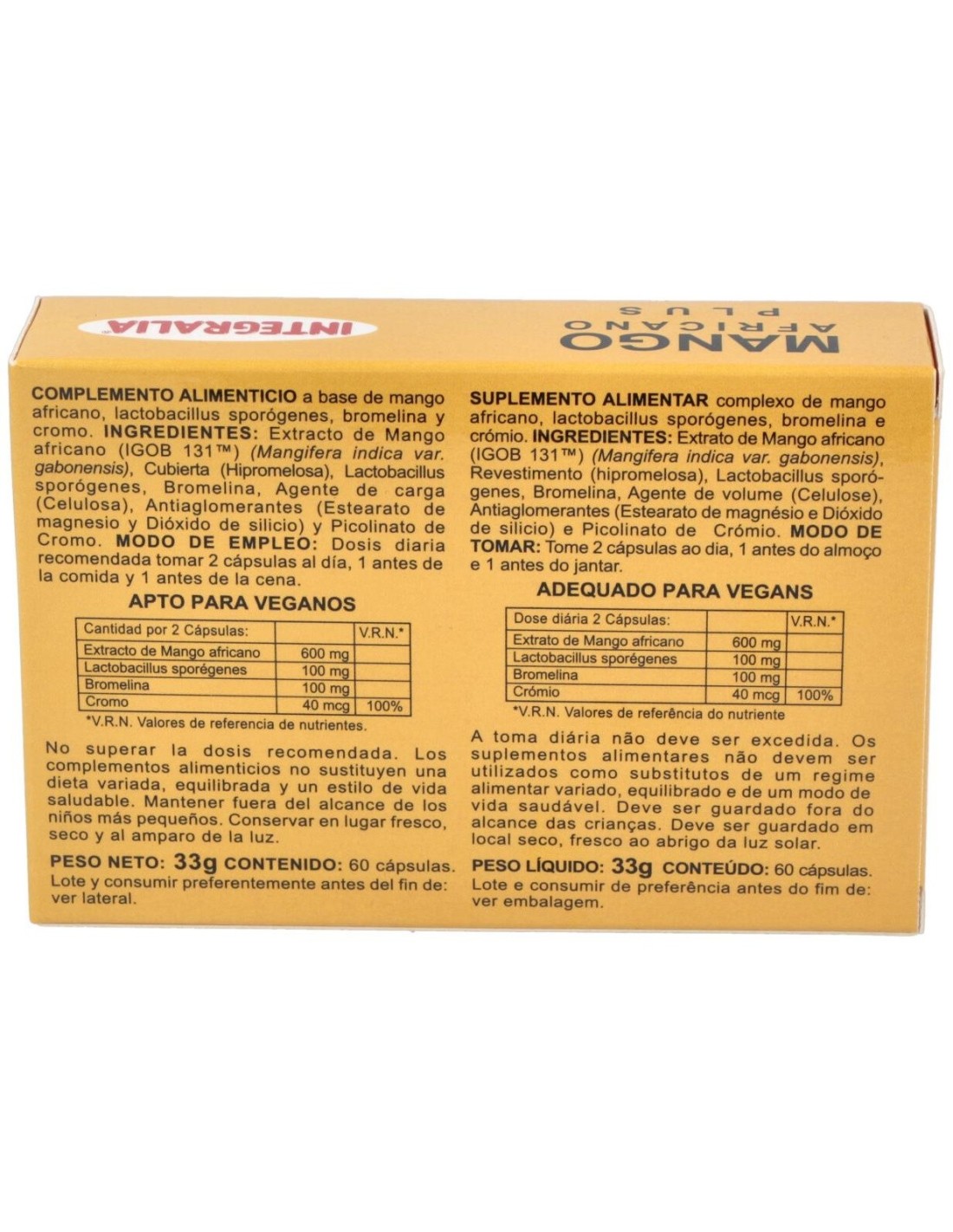 Ext. Mango Africano (IGOB 131)....... 600 mg