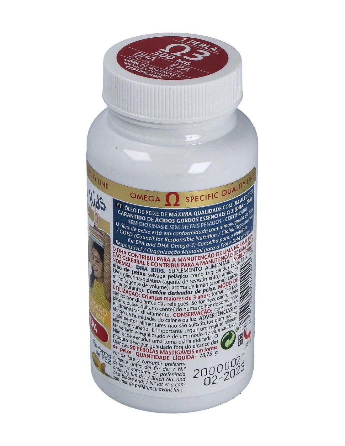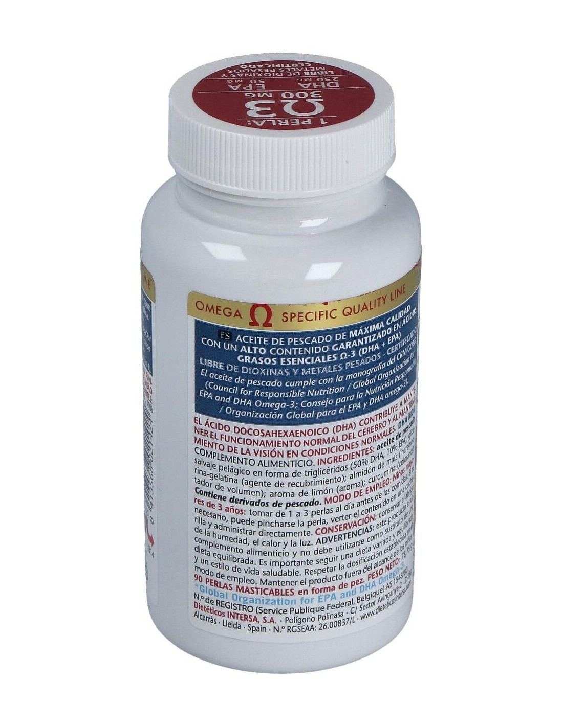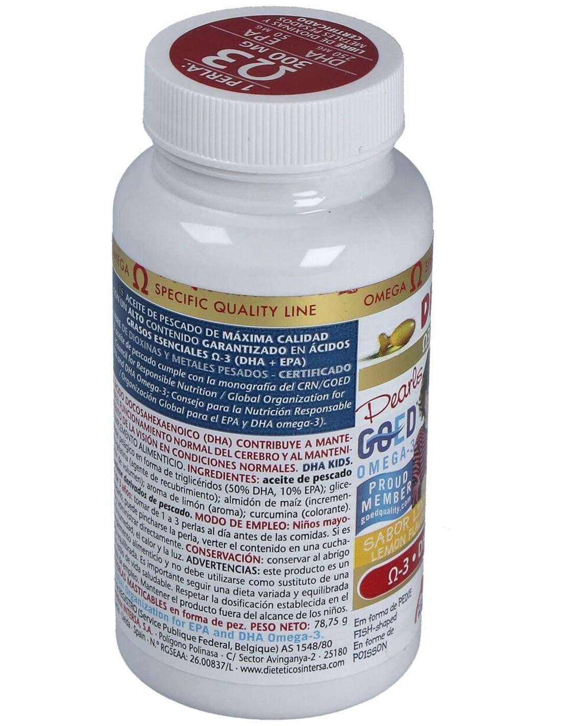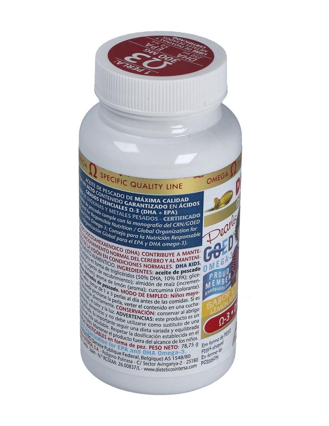 ACEITE DE PESCADO SALVAJE PELÁGICO (50% DHA, 10% EPA).EXCIPIENTES: PERLAS DE GELATINA GLICERINA (ENVOLTURA DE LA PERLA): ALMIDÓN DE MAIZ (AGENTE DE CARGA): AROMA DE LIMÓN (AROMA): CURCUMINA (COLORANTE).
