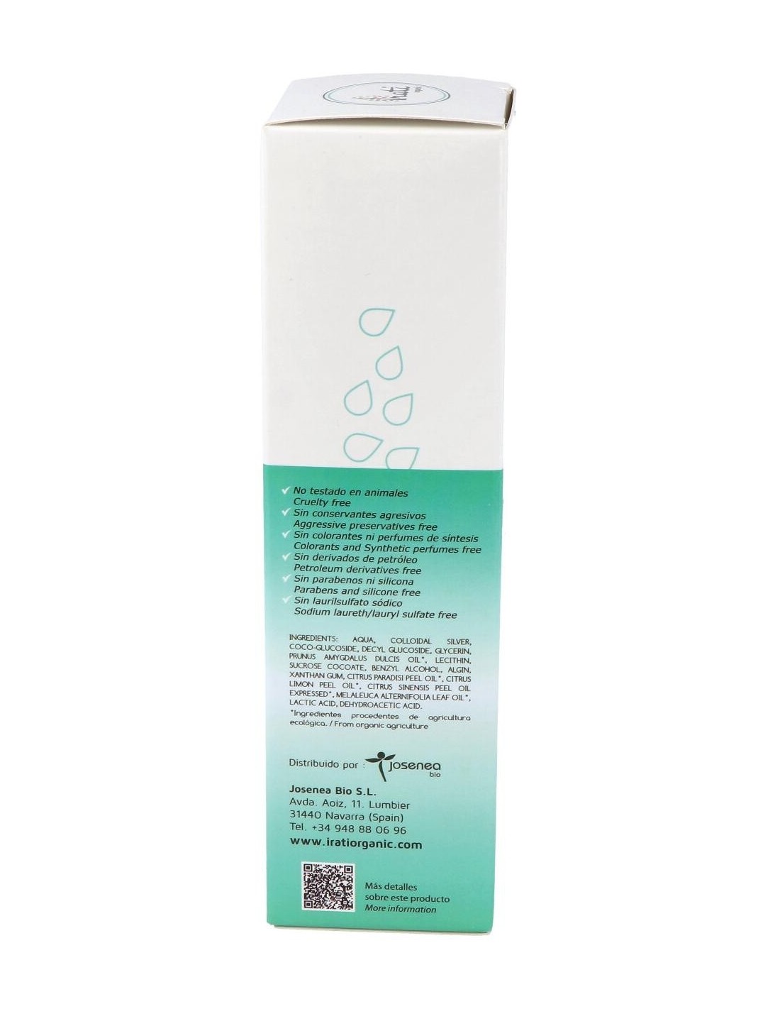 Aqua (agua), colloidal silver (plata coloidal), coco-glucoside (cocoglucósido), decyl glucoside, glycerin (glicerina), prunus amygdalus dulcis oil* (aceite de almendras dulces), lecithin (lecitina de soja), sucrose cocoate (sucrosa cocoato), benzyl alcohol (bencyl alcohol), algin (alginato), xanthan gum (goma xantana), citrus paradisi peel oil* (aceite esencial de pomelo), citrus limon peel oil* (aceite esencial de limón), citrus sinensis peel oil expressed* (aceite esencial de naranja), melaleuca alternifolia leaf oil* (aceite esencial árbol de té), lactic acid (ácido láctico), dehydroacetic acid (ácido dihidroxiacético).