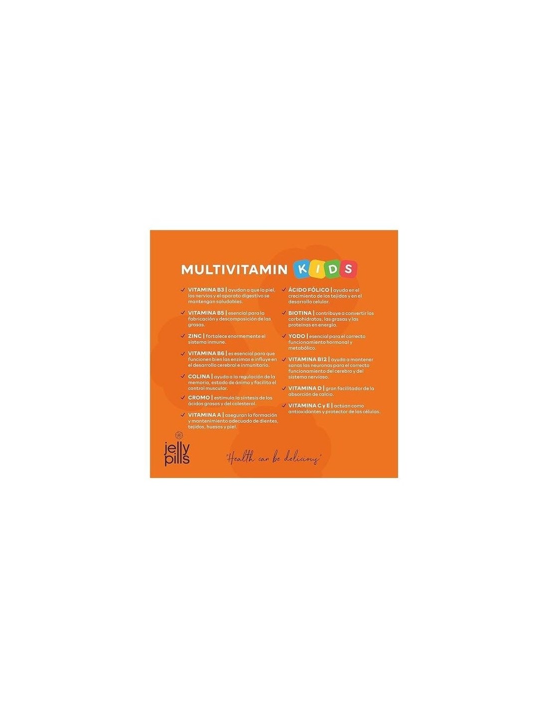 Jelly Pills® Kids Multivitamin Gummies 70uds es un complemento alimenticio en forma de gominolas que aporta todos los nutrientes necesarios para un correcto desarrollo.