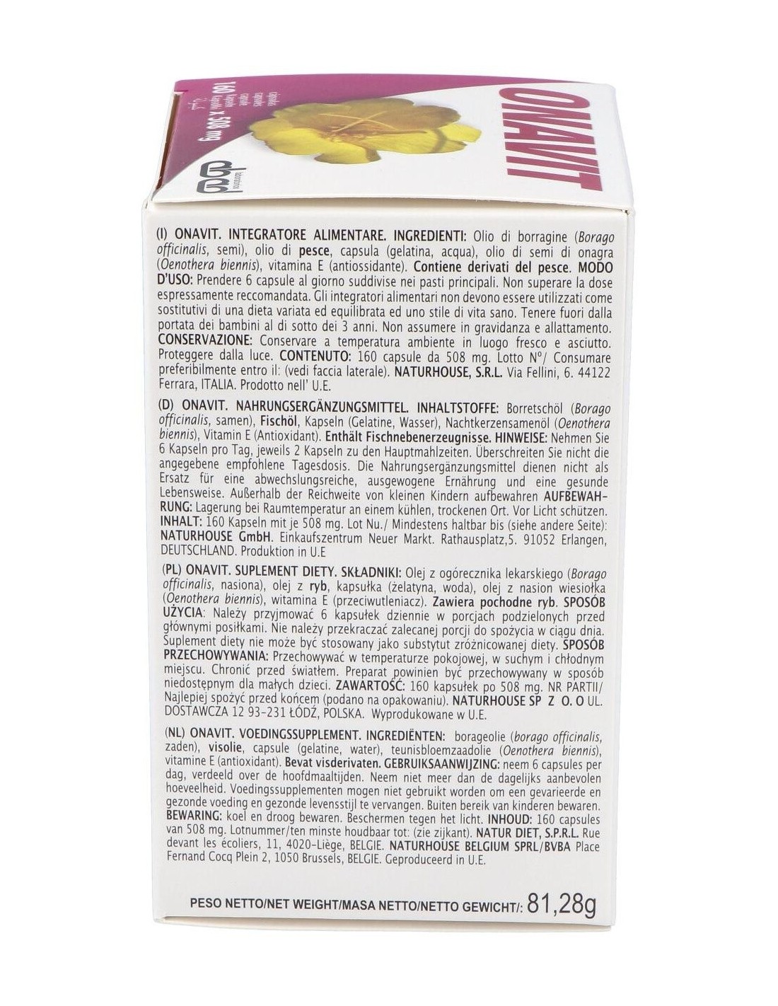 Aceite de borraja (Borago officinalis (20%GLA)), aceite de pescado (18% EPA/ 12% DHA)),capsula (gelatina, agua), aceite de semillas de onagra (Oenothera biennis (10% GLA)), vitamina E (antioxidante).