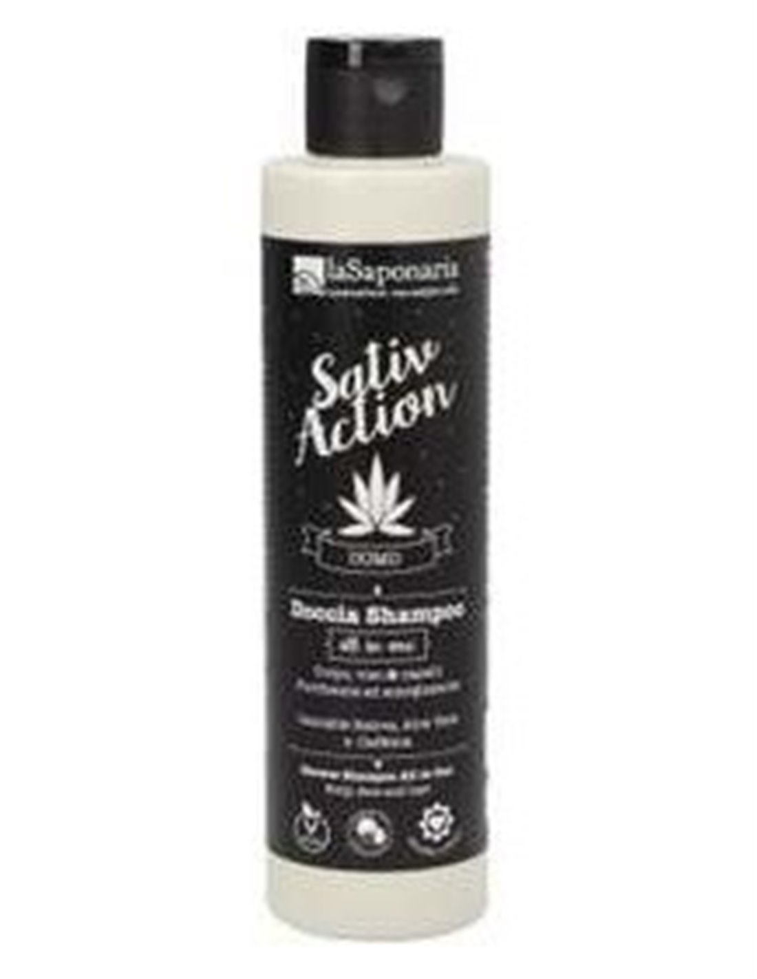 Todo en Uno que contiene una mezcla de ingredientes perfecta para limpiar el cuerpo, la cara y el cabello. Limpia, tonifica e hidrata gracias a sus preciados principios activos como el Aloe vera, conocido por refrescar e hidratar, la Cafeína para dar un impulso de energía y el Cannabis sativa para una acción calmante sobre la piel, y nutritiva en el cabello. Producto vegano.
