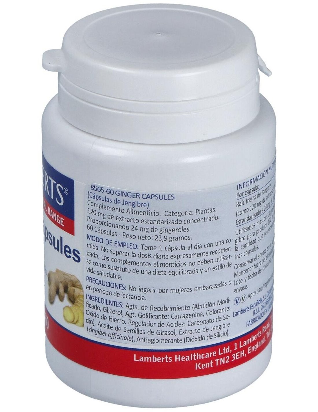 Jengibre 14.400 mg (24 mg de gingeroles) 60 Caps. de Lamberts
