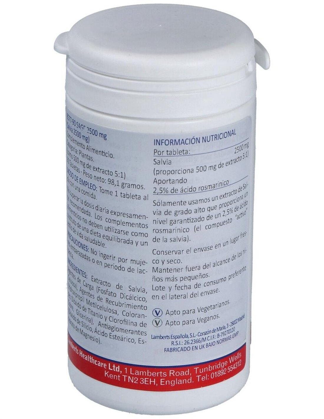 Salvia 2500 mg (2,5% de Ácido rosmarínico) de Lamberts