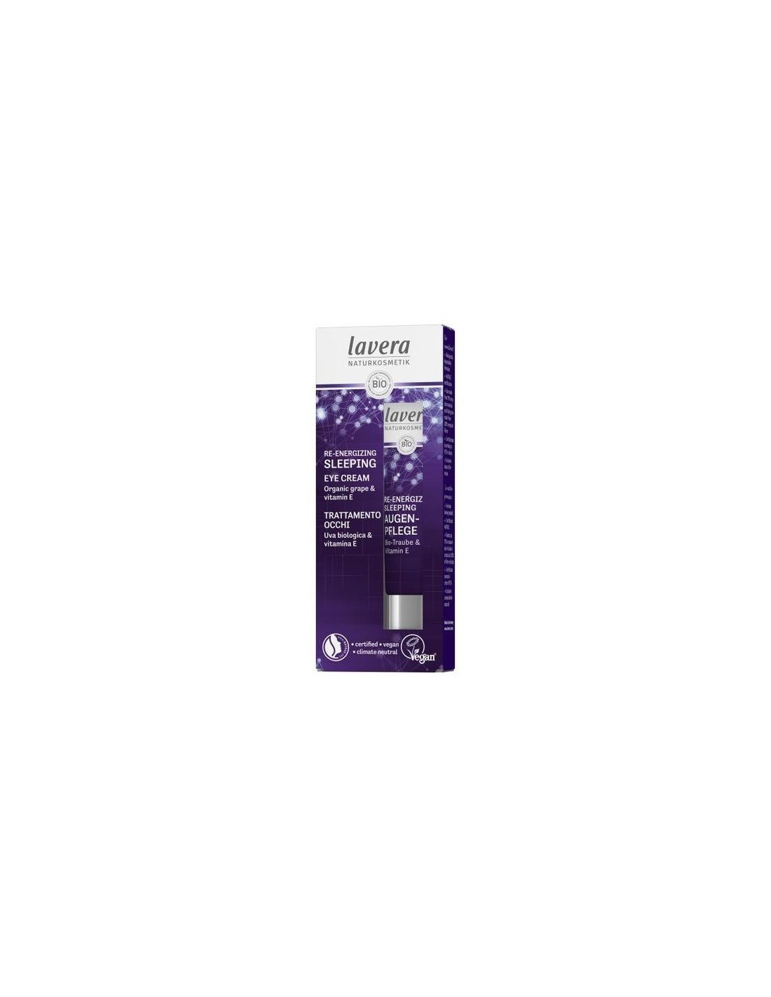LAVERAEstimula el proceso de regeneración natural de las células durante la noche. Reduce las líneas de expresión del contorno de los ojos y aporta frescor. Revitaliza, regenera, hidrata, combate los signos de fatiga y atenúan las ojeras. Tubo 57% de plástico reciclado. Sin perfume. Vegano.