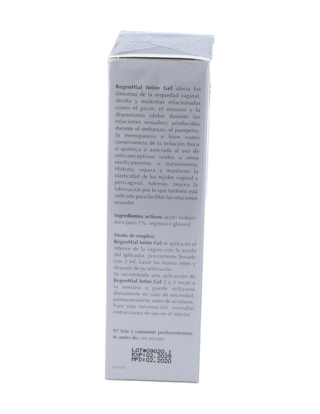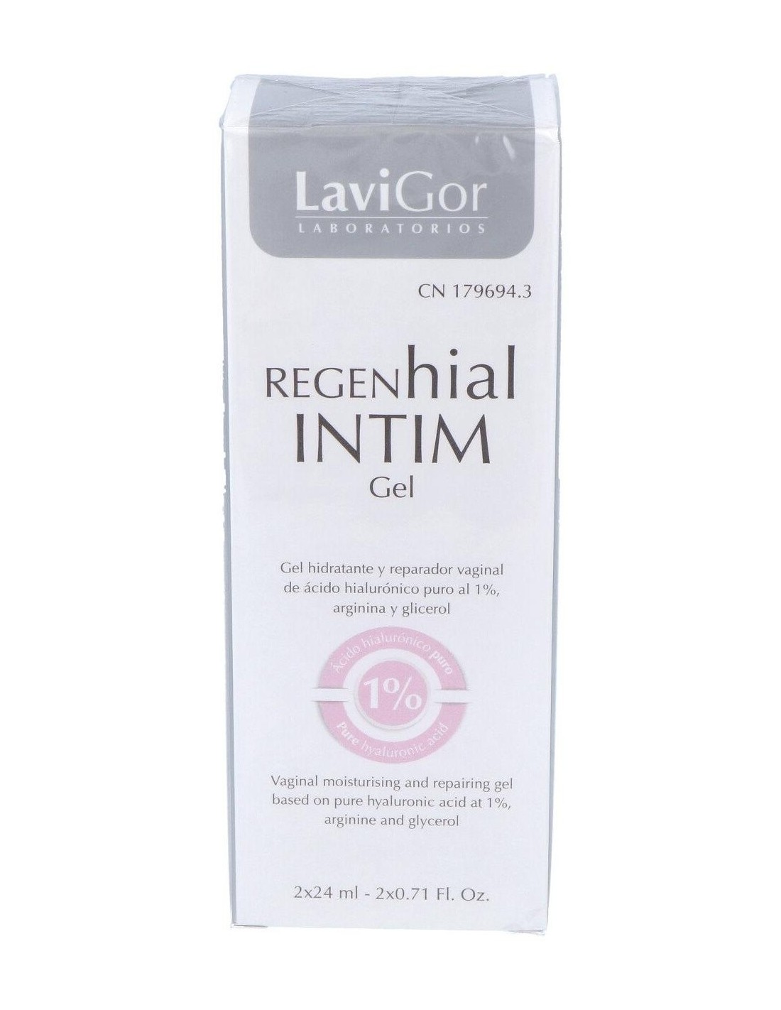 Gel hidratante y reparador vaginal de uso interno con ácido hialurónico al 1%, arginina y glicerol. Está especialmente indicado para aliviar los síntomas de la sequedad vaginal, atrofia y molestias relacionadas con el picor, el escozor y la dispareunia, producidas por reducción estrogénica, irritación física o química, anticonceptivos, medicamentos, etc. Su aplicación se recomienda también después de tratamientos de corrección de suelo pélvico, así como para mejorar la lubricación y facilitar las relaciones sexuales.