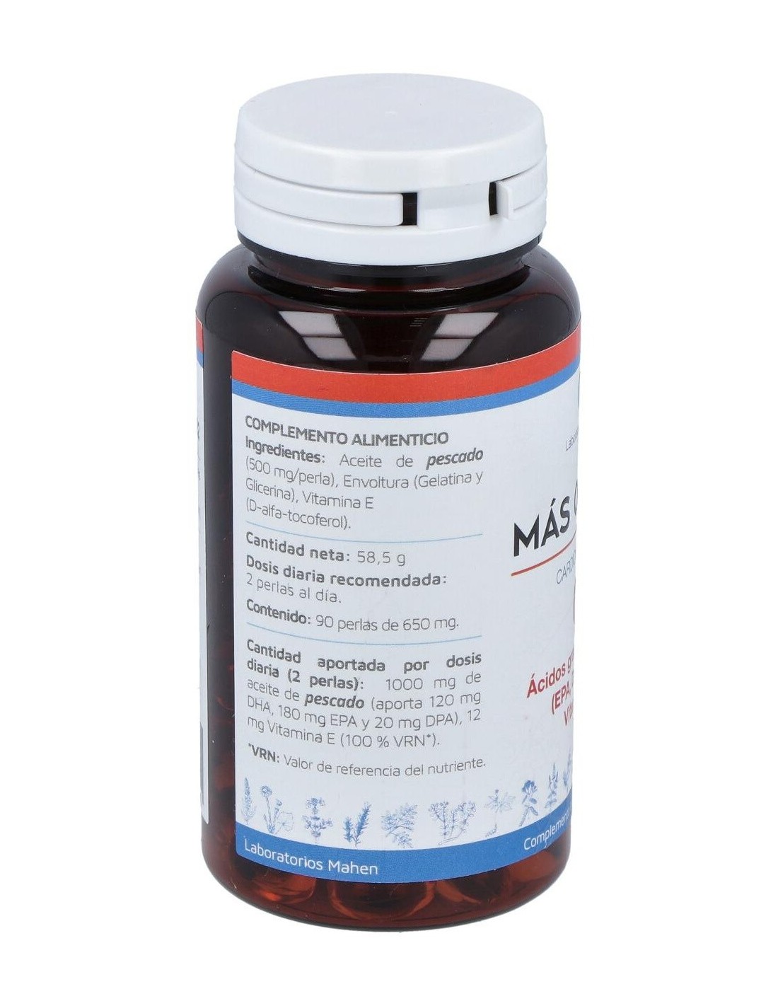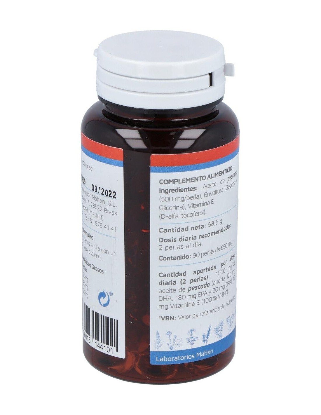 1000 mg de Aceite de pescado (120 mg DHA, 180 mg EPA y 20 mg DPA), 12 mg Vitamina E.