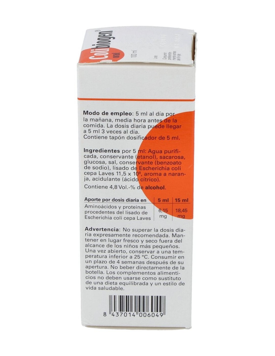 Complemento alimenticio en formato de solución formada por productos metabólicos del lisado de E.Coli, estos componentes son péptidos y ácidos hidrocarbonados destacando ácido acético, butírico, microcinas y GABA. El producto contribuye al restablecimiento de la capa mucosa del epitelio y hace estable la colonización bacteriana en el organismo. No superar la dosis diaria expresamente recomendada. Mantener en lugar fresco y seco fuera del alcance de los niños más pequeños. Una vez abierto, conservar a una temperatura inferior a 25ºC. Consumir en un plazo de 4 semanas después de su apertura. No beber directamente de la botella. Los complementos alimenticios no deben usarse como sustituto de una dieta equilibrada y un estilo de vida saludable. Contiene tapón dosificador de 5 ml.