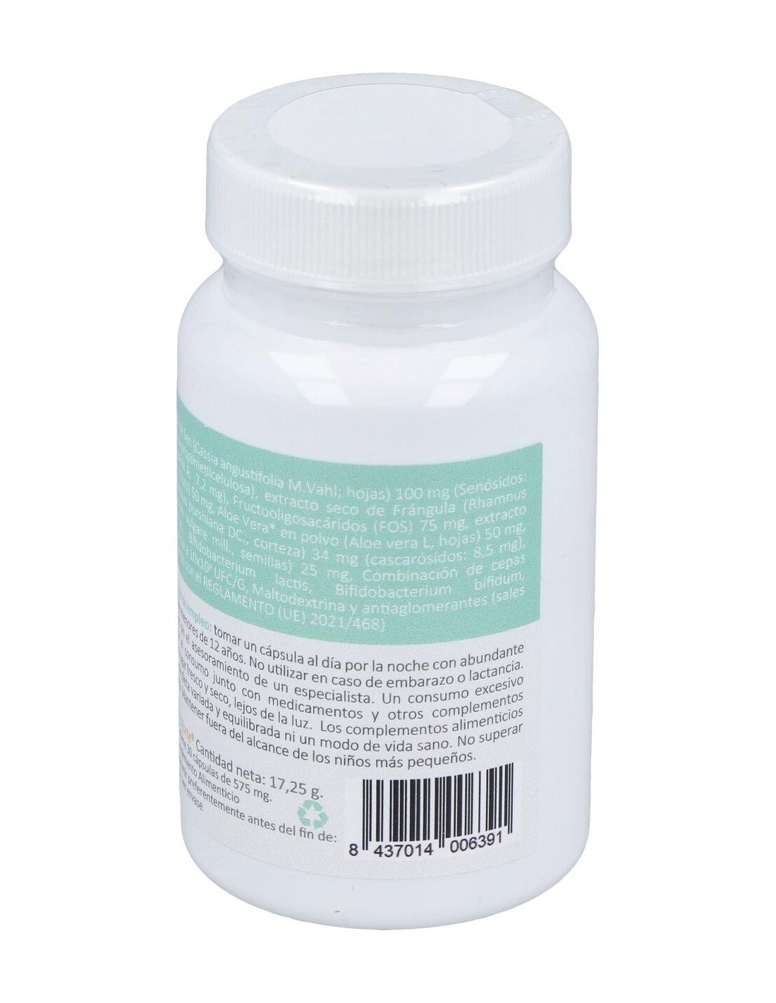 Los complementos alimenticios para contribuir a un tránsito intestinal normal no deben de utilizarse de manera prolongada. En caso de problemas intestinales, así como si se toma medicación, se debe consultar con un profesional sanitario antes de tomar el complemento. Evitar su uso durante el embarazo y la lactancia.