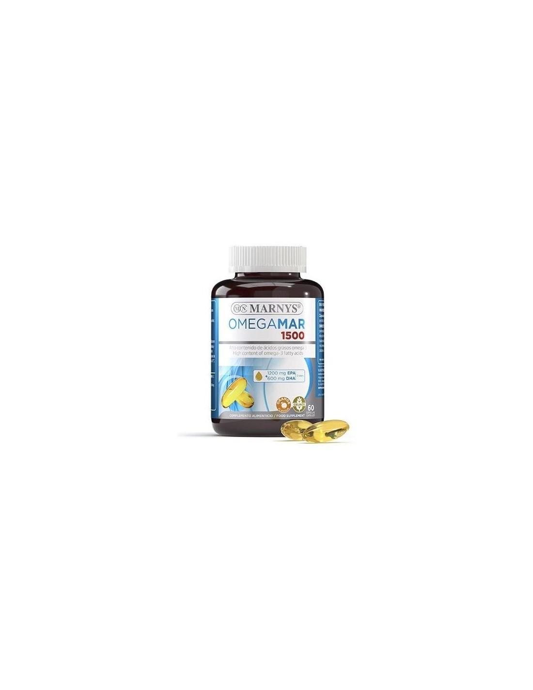 MARNYSMARNYS® OMEGAMAR contiene EPA+DHA proveniente del aceite de pescado de anchoas, sardinas y caballa, los cuales poseen elevadas concentraciones de estos ácidos grasos. Además, los Omegas son obtenidos mediante la técnica de destilación molecular garantizando una calidad superior de DHA+EPA. Tanto el EPA como el DHA contribuyen al funcionamiento normal del corazón y a mantener la función cognitiva. Alta concentración de ácidos grasos Omega 3 con un suave sabor a naranja. Apto para celíacos. Omegamar 1500 está recomendado en adultos.