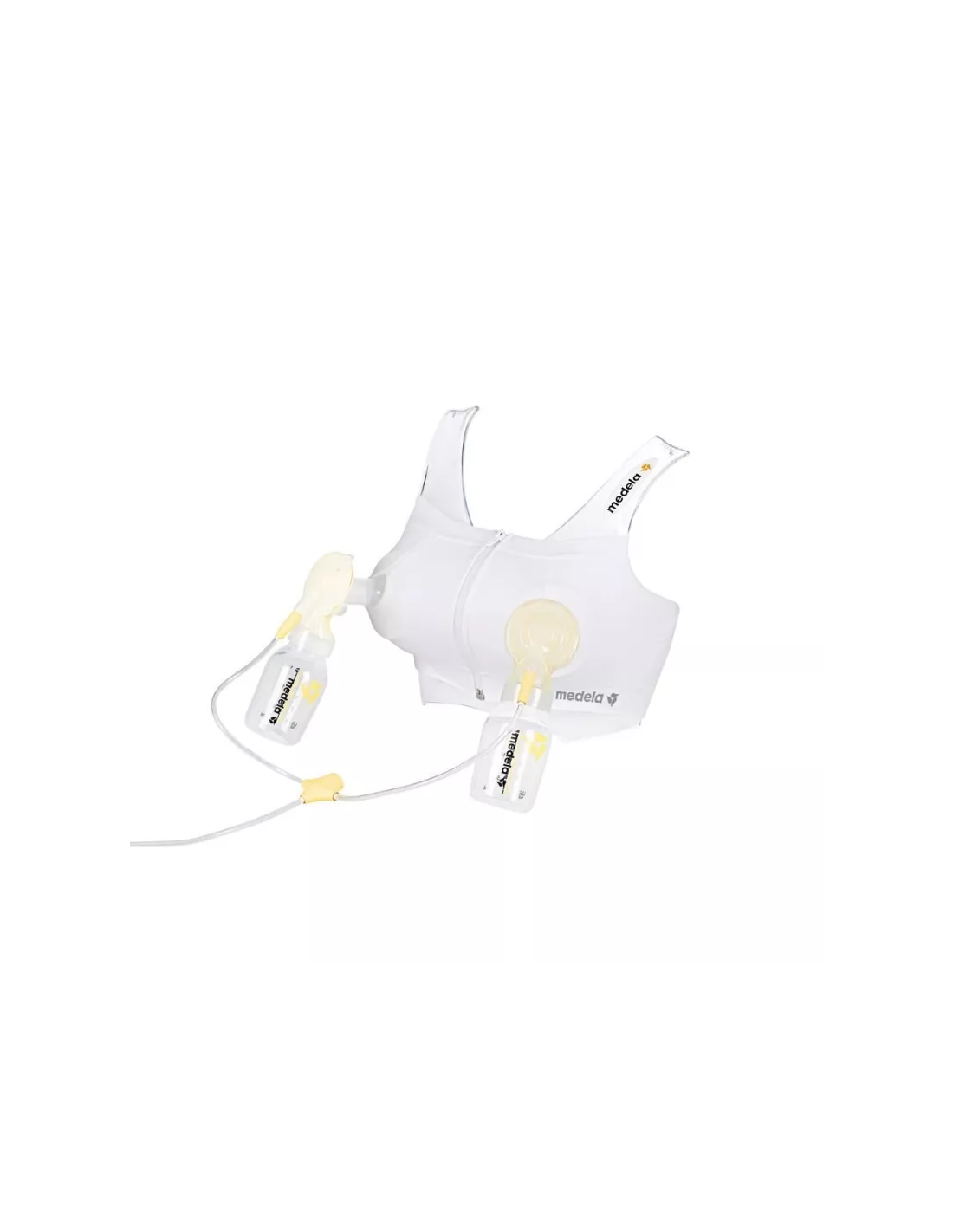 MEDELAEl top de extracción Hands-free de Medela hace que la extracción de leche sea fácil y práctica. Tanto el extractor de leche como embudos quedan bien sujetados.