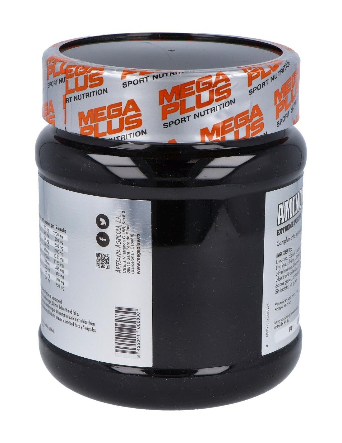 L- leucina, cápsula [gelatina comestible, colorante (dióxido de titanio)], L- valina, L- lisina, L-isoleucina, estabilizador (celulosa microcristalina), L-Fenilalanina, L- treonina, L-histidina, L- metionina, L- triptófano, L-leucina/L-isoleucina/L-valina 2:1:1, emulgente (sales magnésicas de ácidos grasos), antiaglomerante (dióxido de silicio).
