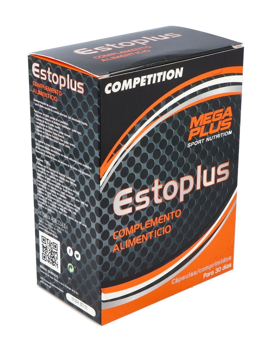 Ingredientes: ácido L-aspártico, tribulus terrestris (tribulus), cápsula [gelatina comestible, colorante (dióxido de titanio)], estabilizador (celulosa microcristalina), Lepidium meyenni (maca), avena sativa (avena), L-arginina, L-ornitina, L-lisina, emulgente (sales magnésicas de ácidos grasos), sulfato de cinc, antiaglomerante (dióxido de silicio), ácido trans-ferúlico natural, clorhidrato de piridoxina (vitamina B6).