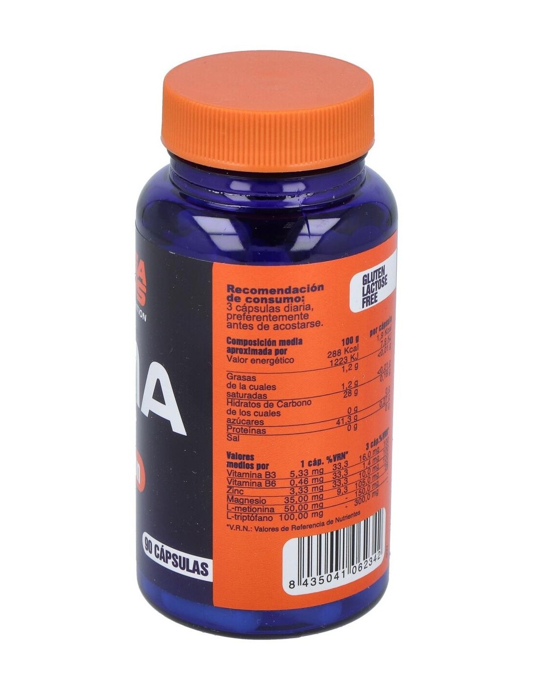 Magnesio, Zinc, Vitamina B6, L-Metionina, Vitamina B3, L-Triptófano, Maltodextrina, Óxidos De Hierro, Sales magnésicas de ácidos grasos, Cápsula vegetal, Hidróxidos de hierro, Zinc sulfato , Magnesio fosfato tribásico.