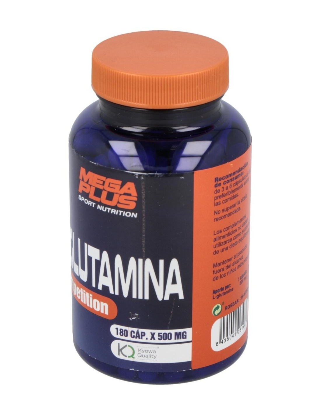 Cápsulas ricos en glutamina, que es un aminoácido no esencial aunque muy importante para la pronta recuperación del organismo tras largos periodos de entrenamiento intenso. Ayuda a metabolizar las proteínas y previene el catabolismo muscular. Además, favorece el aumento de masa muscular.