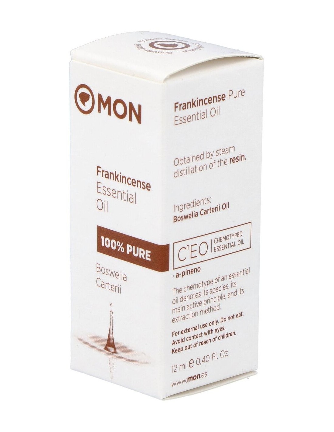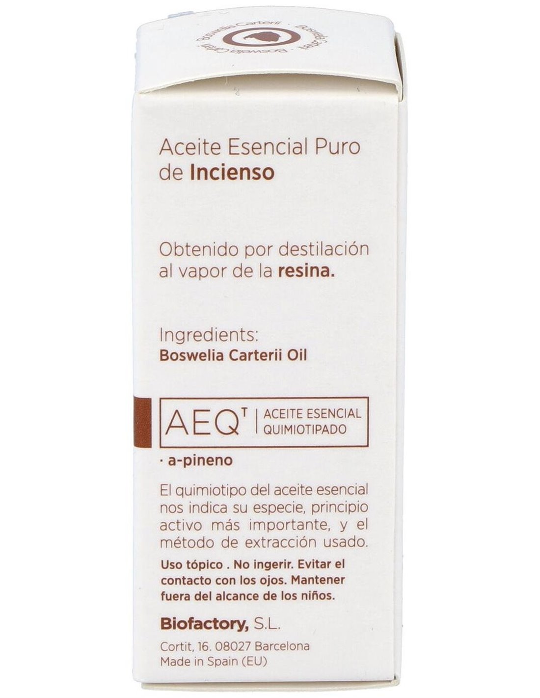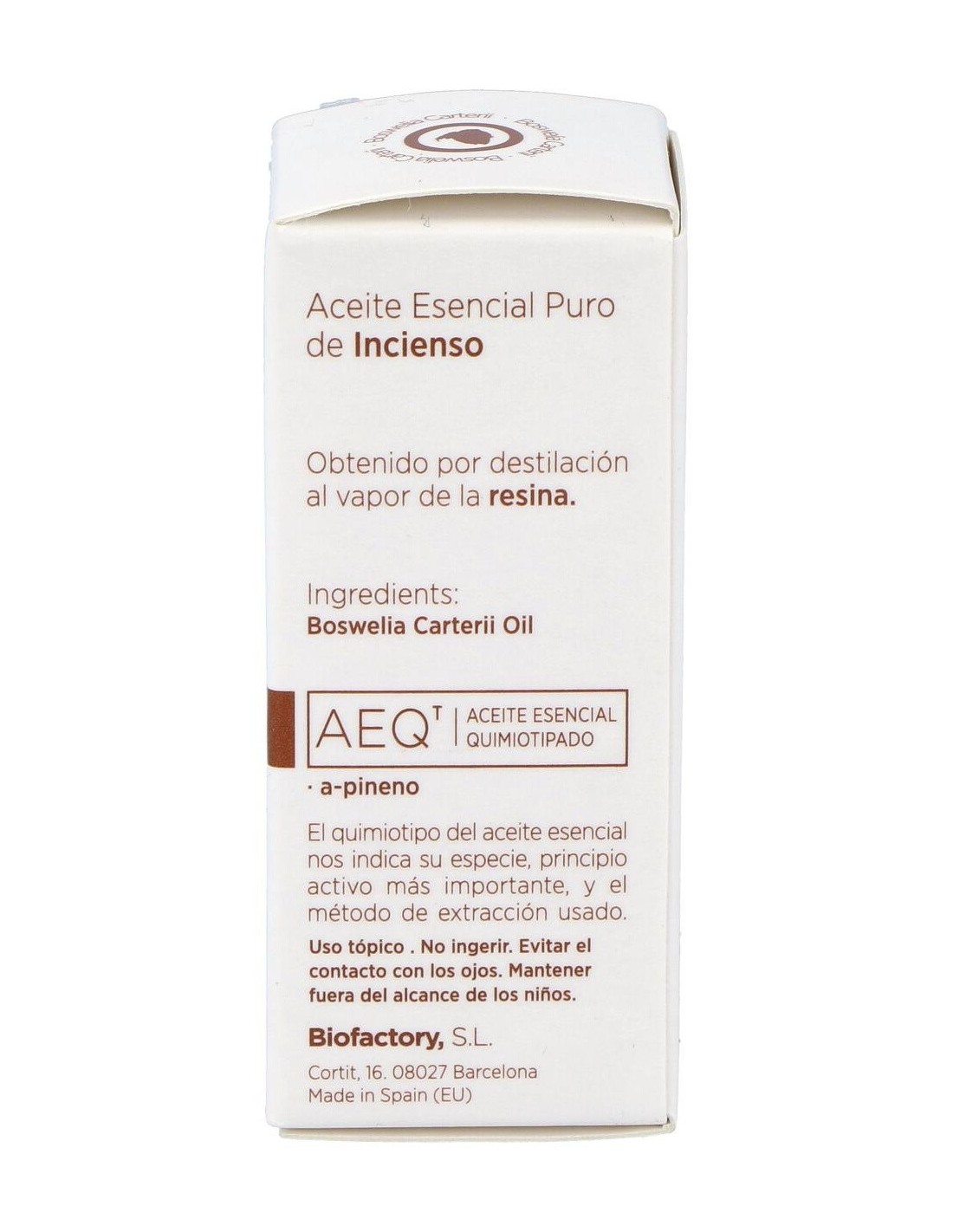 Aceite esencial 100% puro de Boswellia carterii, obtenido por la destilación al vapor de agua de la resina sin presión. Con A-pineno, Limoneno como principio activo.