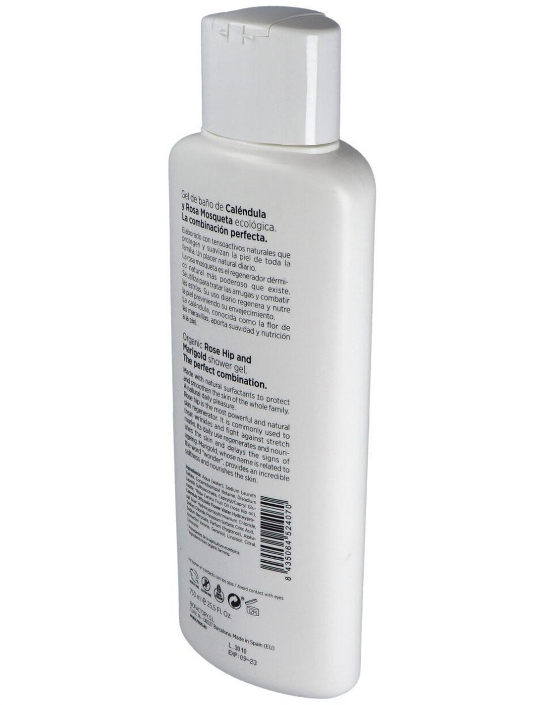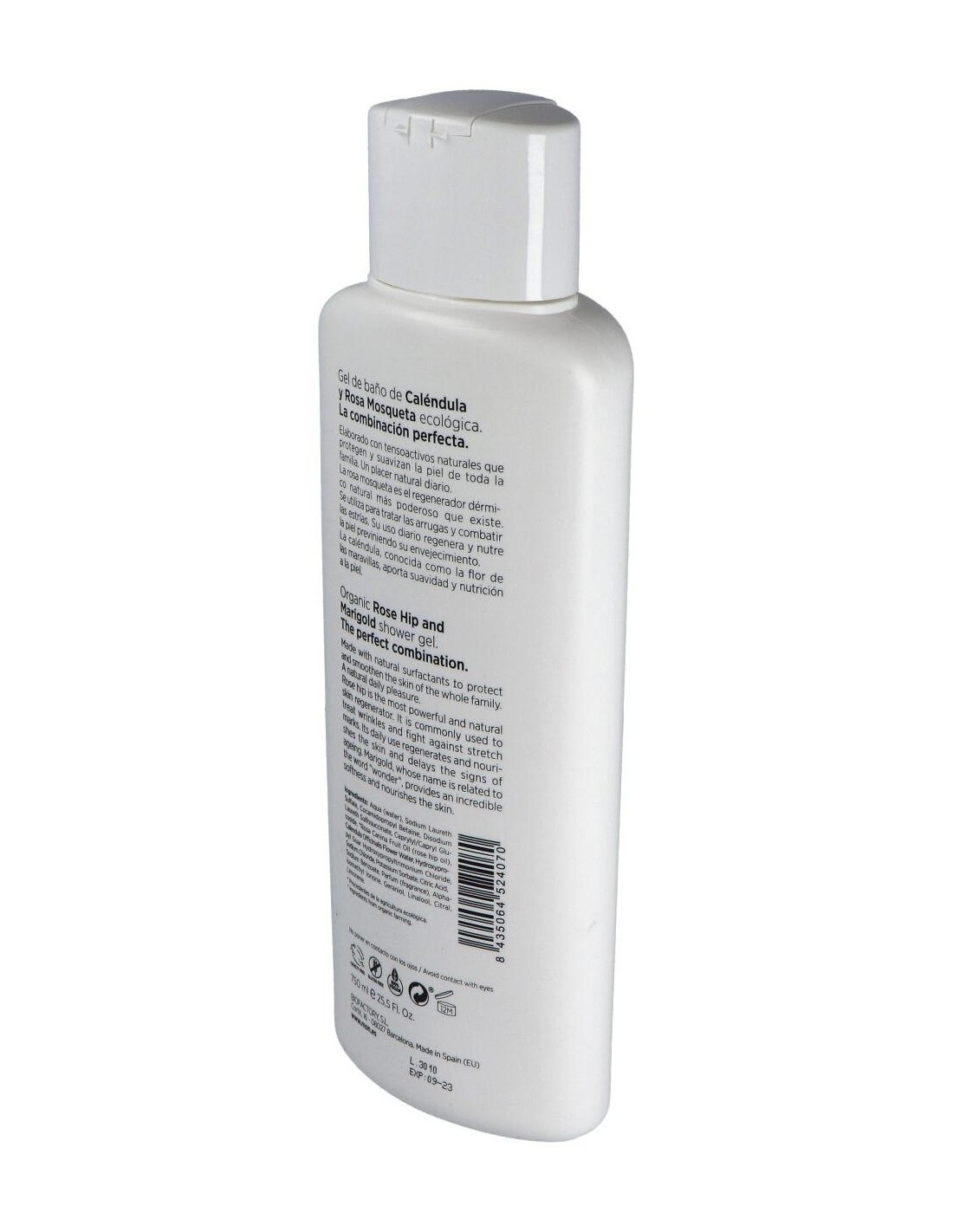 Aqua (water), Sodium Laureth Sulfate, Cocamidopropyl Betaine, Disodium Laureth Sulfosuccinate, Caprylyl/Capryl Glucoside, *Rosa Canina Fruit Oil (rose hip oil), Calendula Officinalis Flower Water, Hydroxypropyl Guar Hydroxypropyltrimonium Chloride, Sodium Chloride, Potassium Sorbate, Citric Acid, Sodium Benzoate, Parfum, Alphaisomethyl Ionone, Geraniol, Linalool, Citral, Limonene. * Procedentes de la agricultura ecológica. * Ingredients from organic farming.