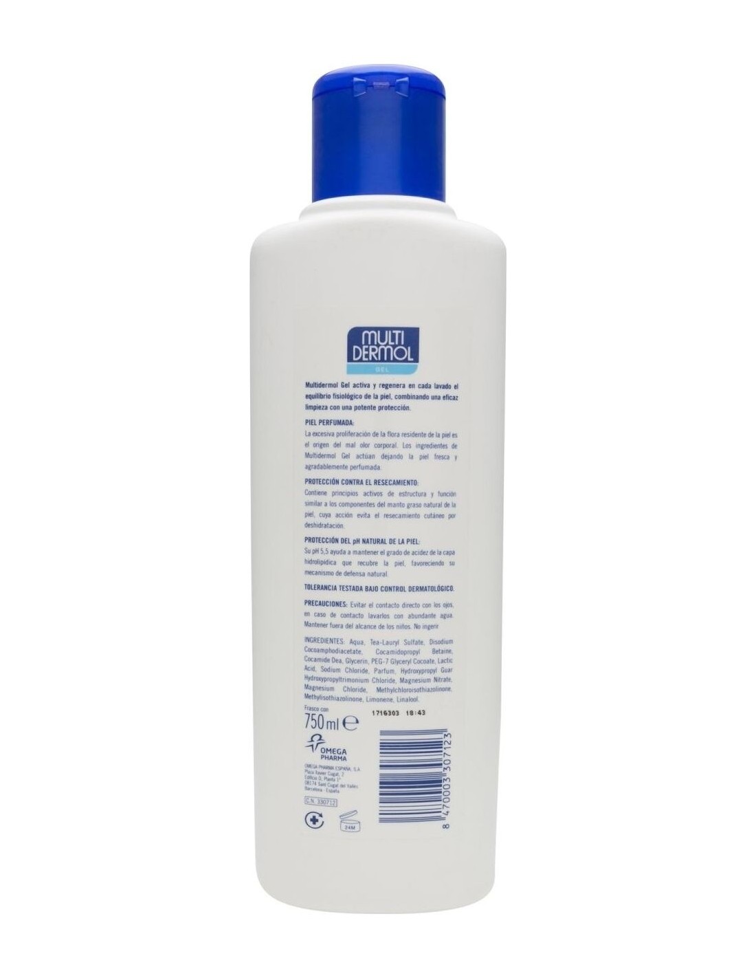 Multidermol | Multidermol gel 750mlMultidermol gel 750ml es un gel de baño con propiedades hidratantes. Protege la piel, ayuda a evitar la deshidratación cutánea, repara la estructura celular y mantiene su estabilidad sin producir picores ni irritaciones.