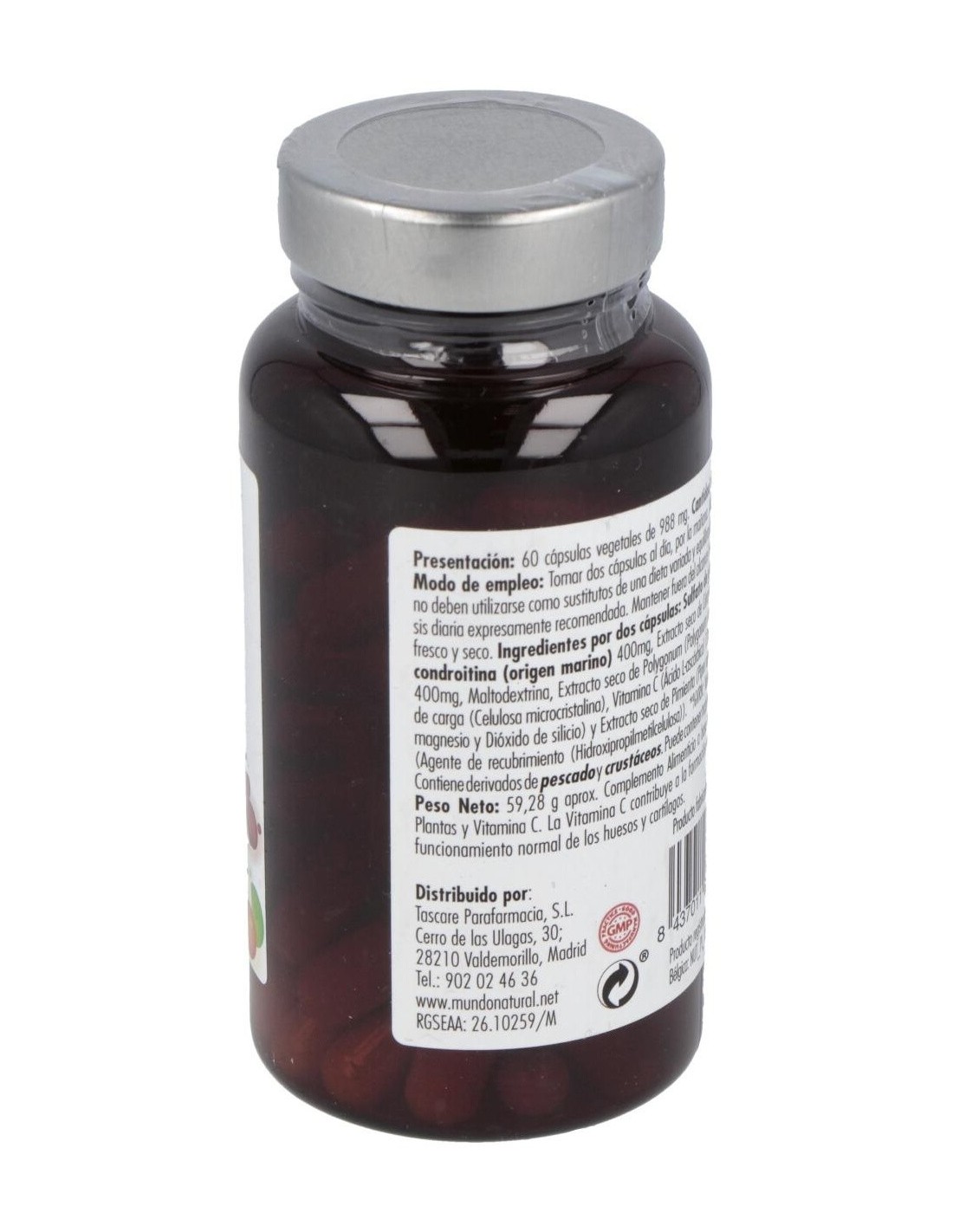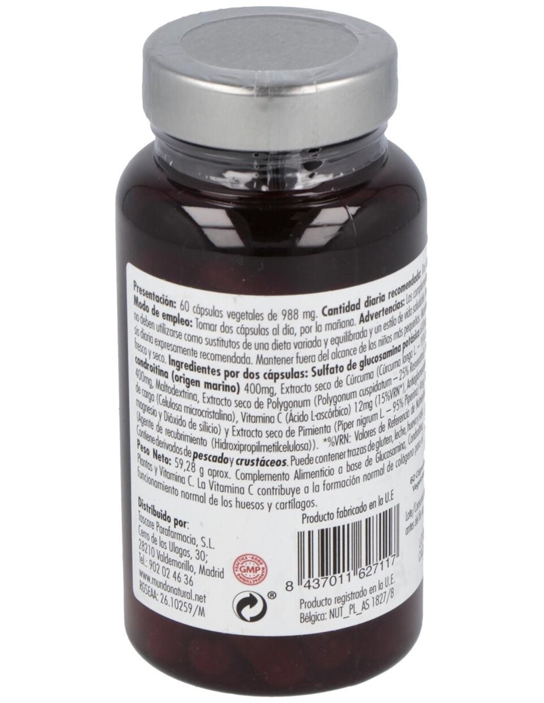 CONDROITÍN SULFATO DE ORIGEN MARINO, GLUCOSAMINA SUFATO POTÁSICA, CÚRCUMA, BIOPERINE PIPER NIGRUM Y POLYGONUM CUPSIDATUM.