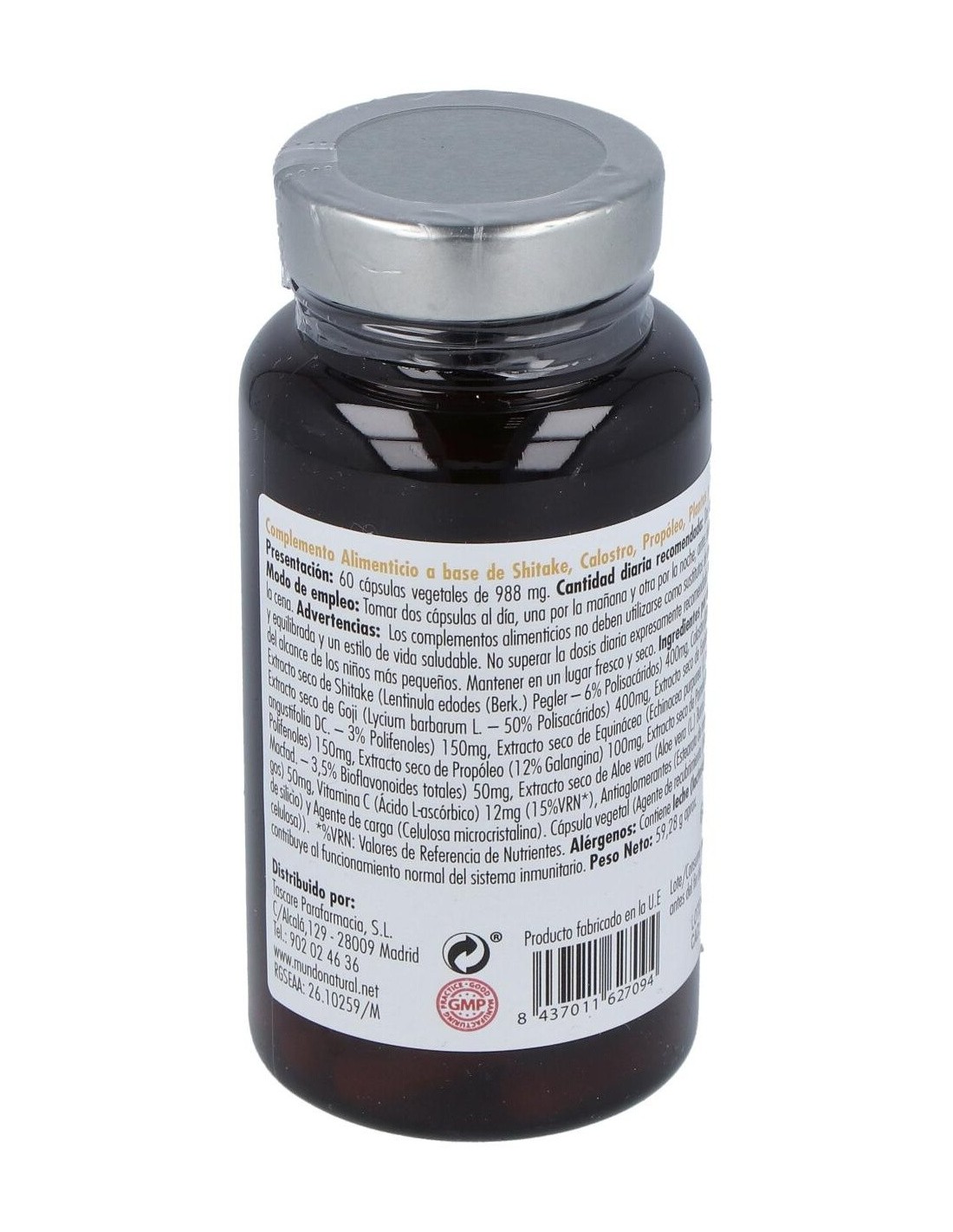 INGREDIENTES POR 2 CÁPSULAS: 400 MG DE SHITAKE. 400 MG DE CALOSTRO. 400 MG DE GOJI. 150 MG DE ECHINACEA ANGUSTIFOLIA. 150 MG DE ECHINACEA PURPUREA. 100 MG DE PROPOLEO. 50 MG DE POMELO.