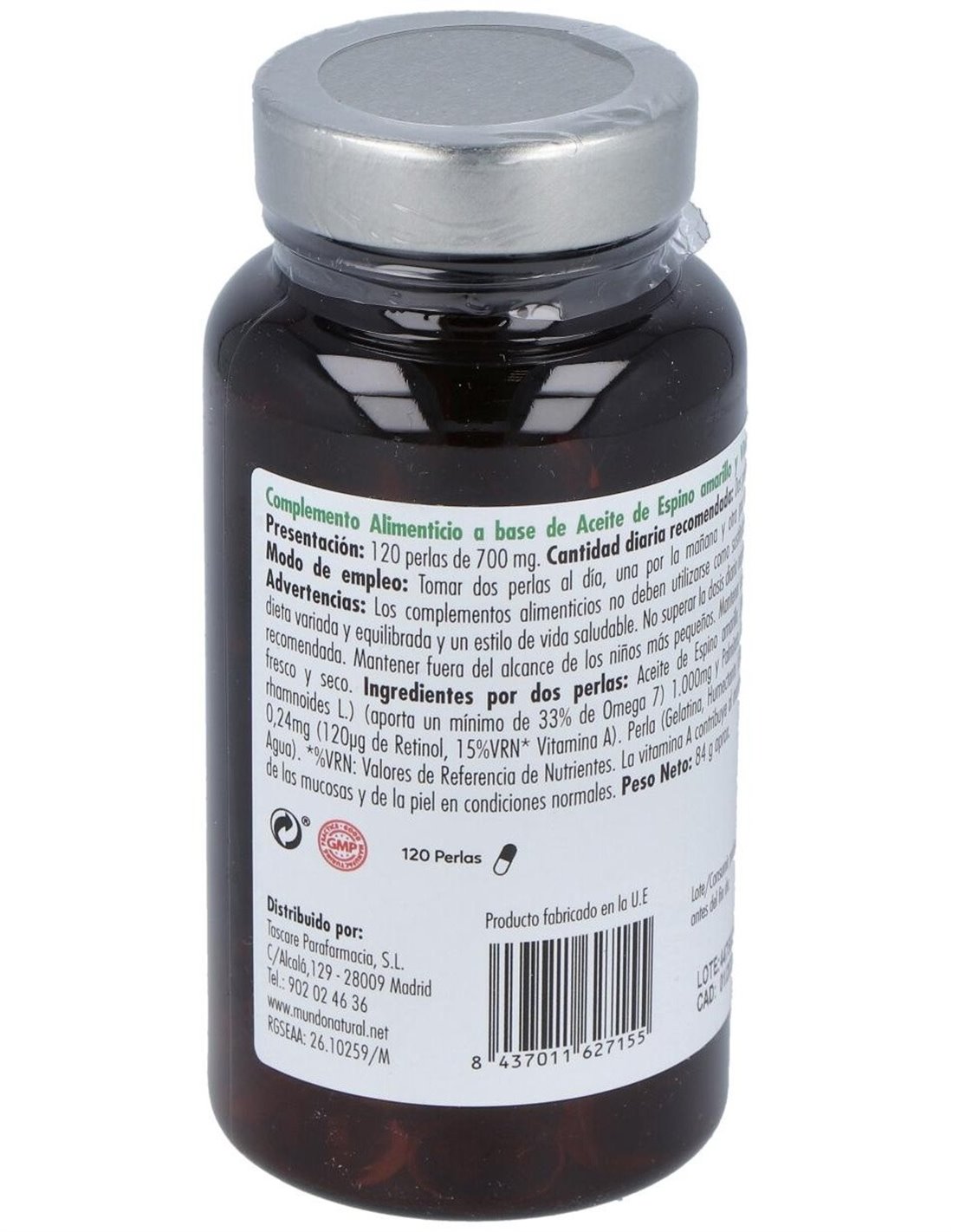 MUNDONATURALOleomega 7® es un complemento natural recomendado para el alivio de diversos problemas de la piel y la sequedad de mucosas, debido a su capacidad de regeneración, nutrición e hidratación.Propiedades:Aceite del espino amarillo: El aceite del espino amarillo se ha utilizado para tratar diversas enfermedades epiteliales.
