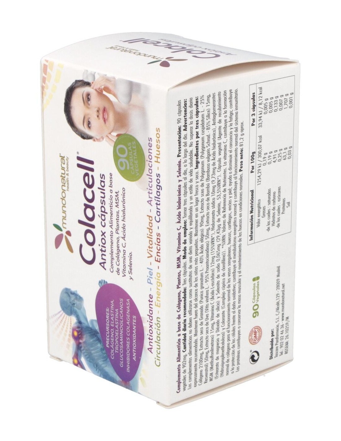 Colacell® es un complemento alimenticio que contribuye a retardar los procesos de deterioro de la piel, al aportar péptidos bioactivos de colágeno tipo I, resveratrol de distintas fuentes y silicio organico.