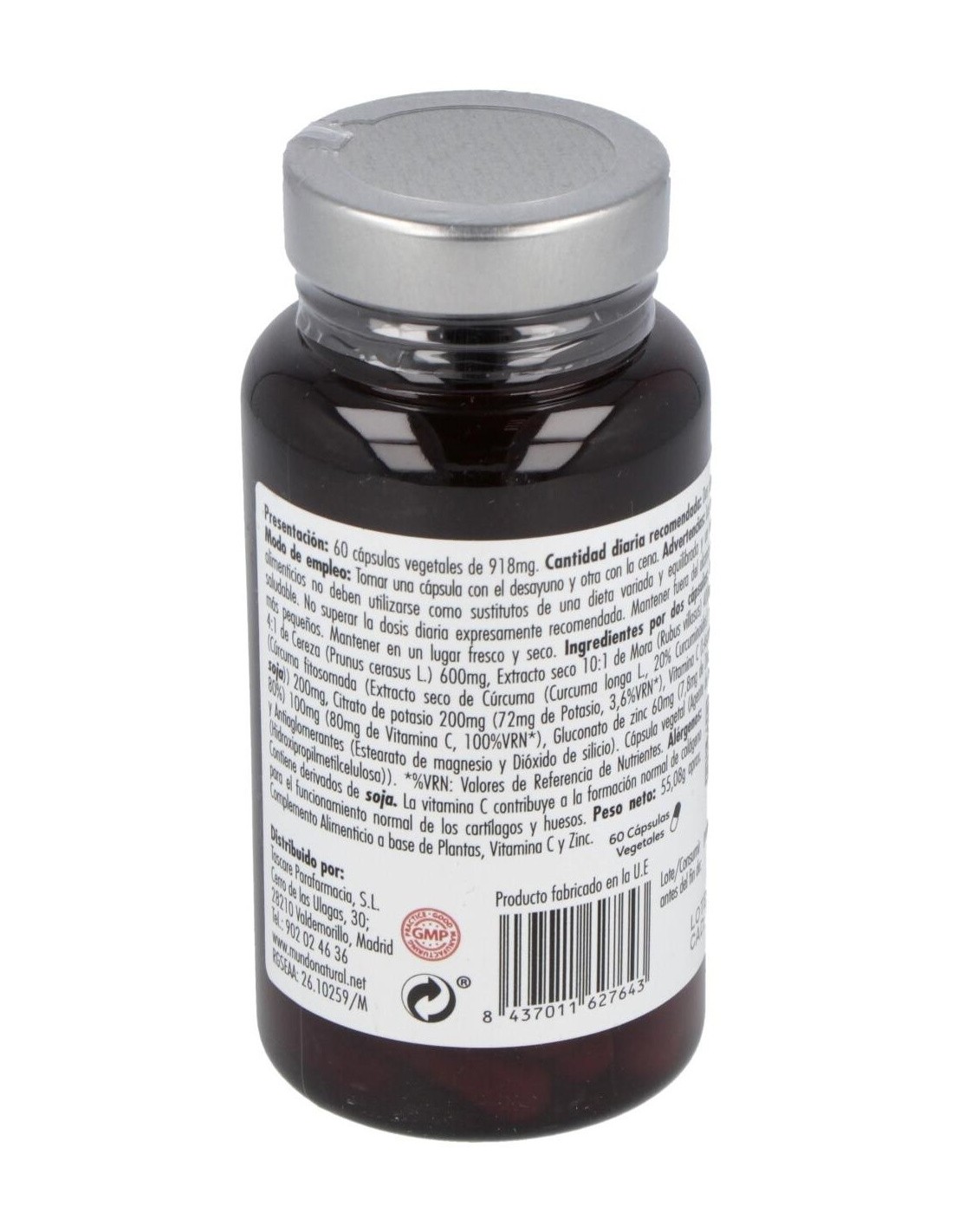 Producto que previene el surgimiento de artritis entre otros trastornos inflamatorios, gracias a su capacidad para reducir el ácido úrico, además de cumplir un rol antioxidante. Es Complemento Alimenticio a base de Plantas (cereza y mora), cúrcuma y Vitamina C y Zinc. Apoya al control de las cifras normales de ácido úrico. Contiene: Extractos de cerezas, mora y cúrcuma. Citrato de potasio que favorece la eliminación de líquidos y vitamina C y Zinc. Además aporta Citrato de Potasio, el cual tiene propiedades diuréticas sobre el organismo, el zinc combate las inflamaciones a nivel articular y detiene el avance de los radicales libres.