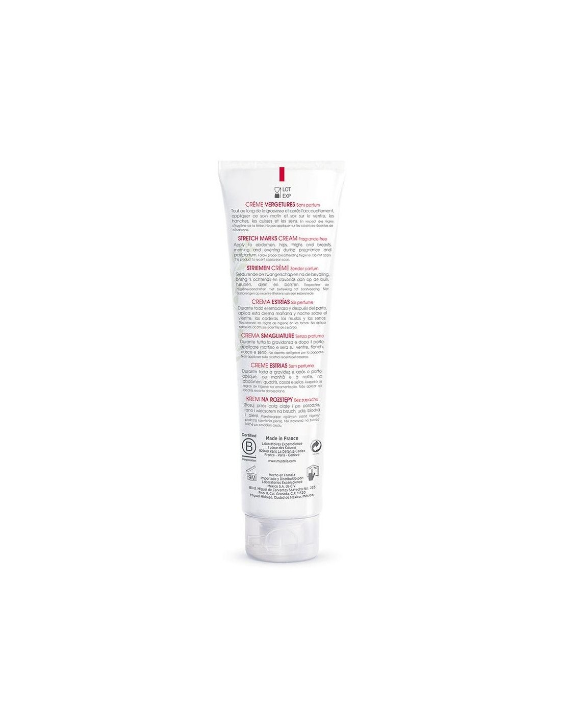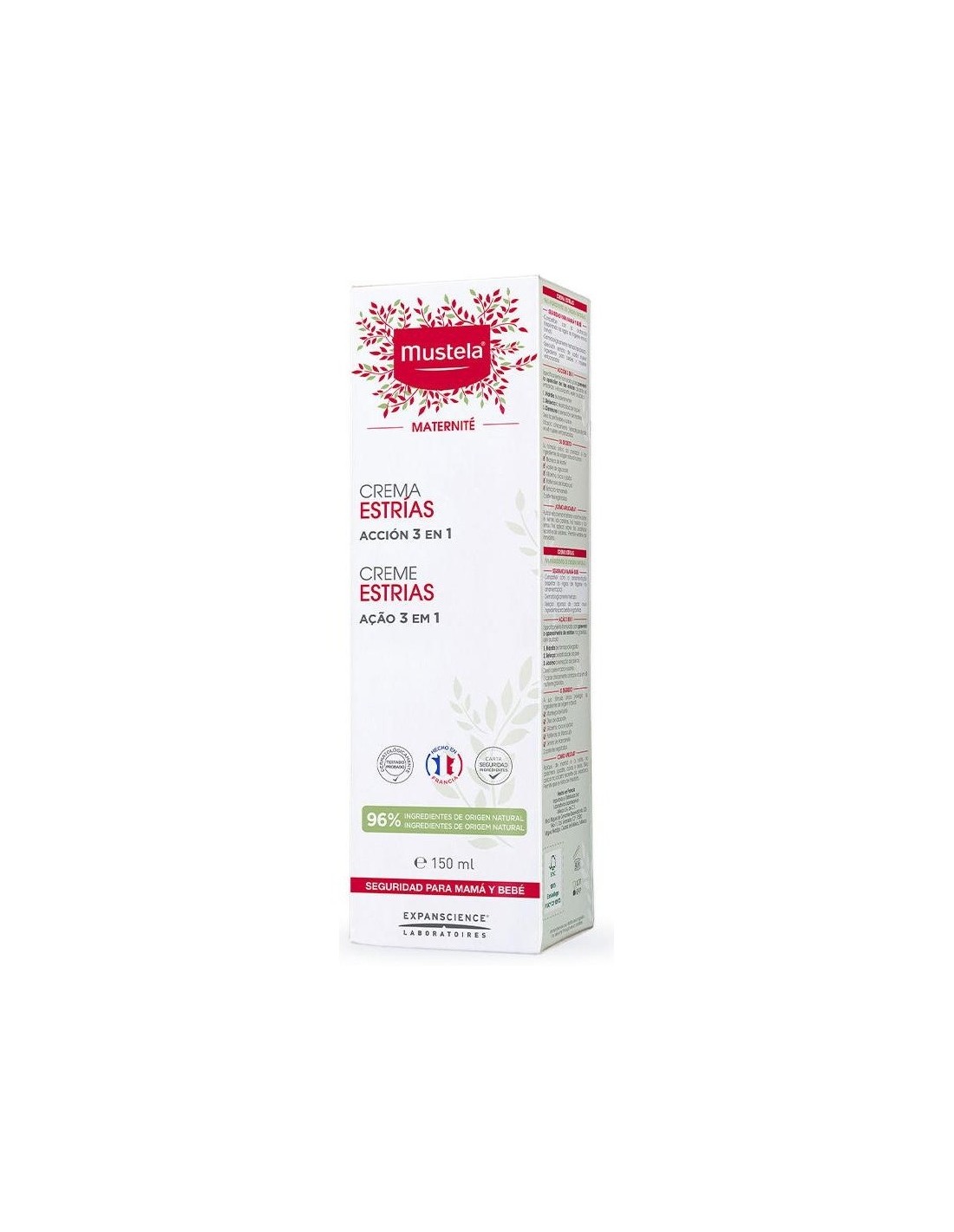 MUSTELAHidrata y alivia las sensaciones de tirantez. Su ingrediente clave se extrae del aceite de maracuyá y se ha seleccionado específicamente para mejorar la elasticidad y preservar la flexibilidad de la piel de las mujeres embarazadas. Especialmente formulada para prevenir la aparición de estrías durante todo el embarazo.
