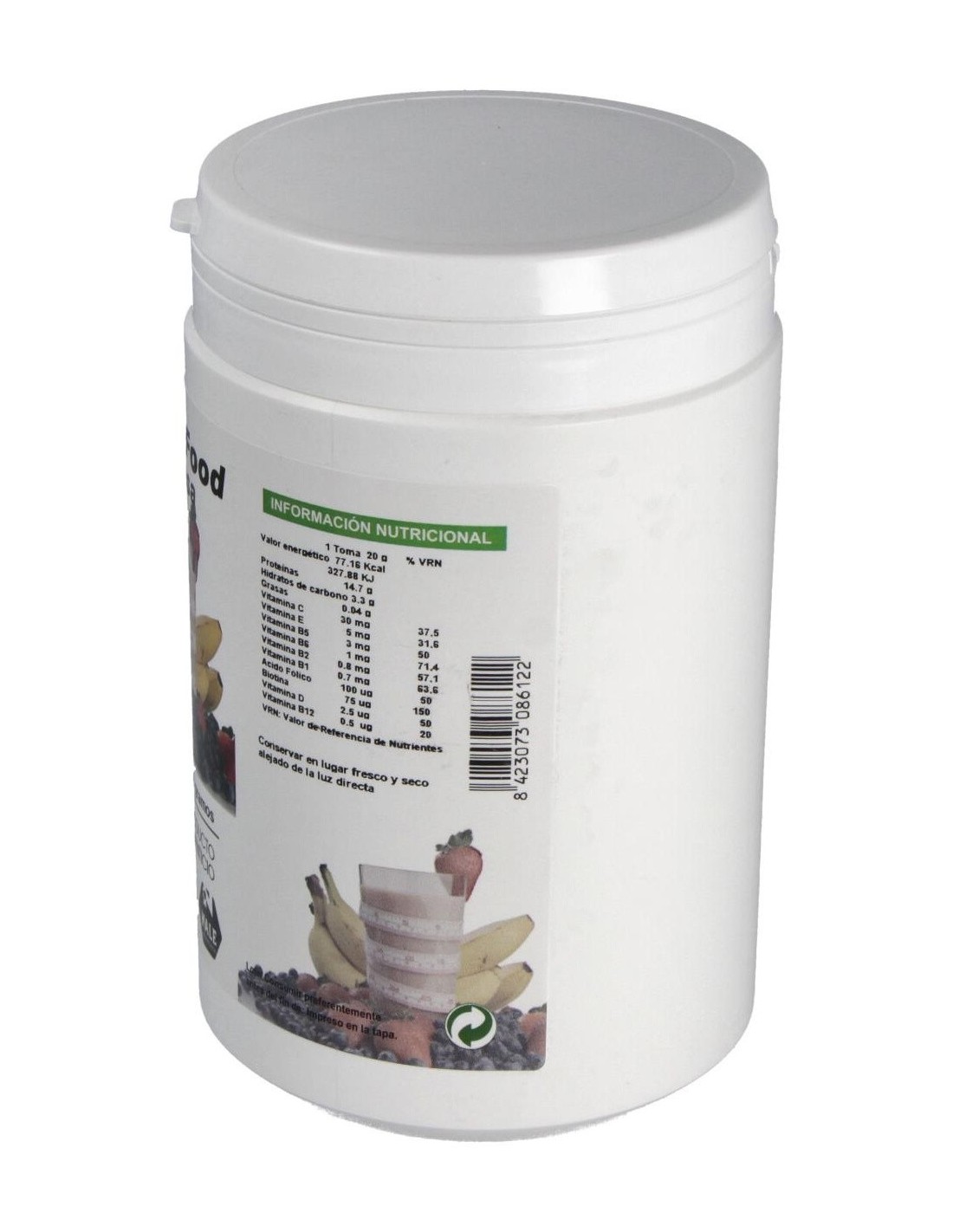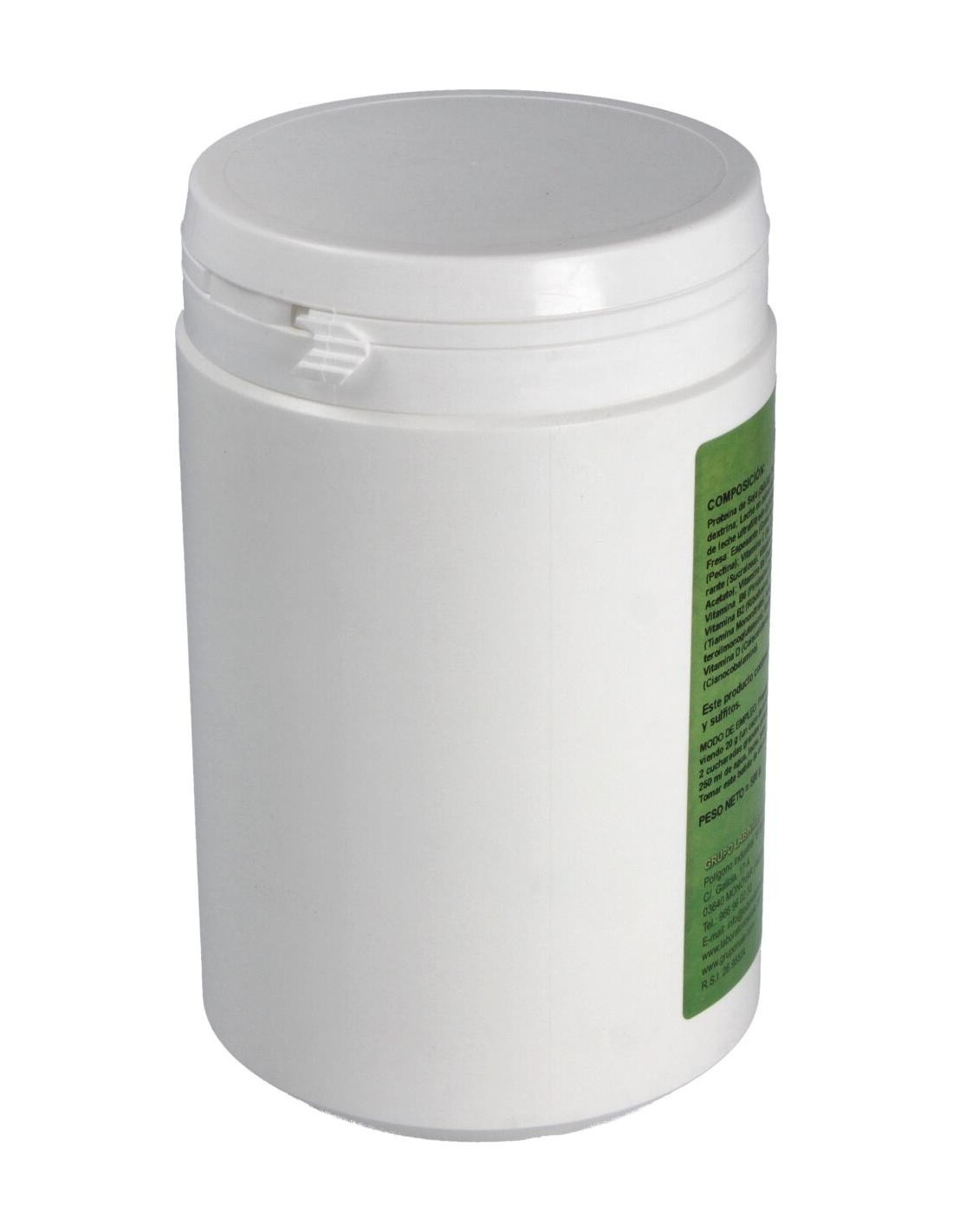 Proteína de Soja: Fructosa: Maltodextrina: Leche en polvo desnatada: Suero de leche ultrafiltrado : Aroma: Espesante (Goma de Guar), Espesante (Pectina): Vitamina C (Ac. LAscórbico): Edulcorante (Sucralosa): Vitamina E (DL-alfa tocoferil Acetato): Vitamina B5 (Pantetonato de Calcio): Vitamina B6 (Piridoxina Clorhidrato): Vitamina B2 (Riboflavina): Vitamina B1(Tiamina Mononitrato): Ácido Fólico (Ácido pteroilmonoglutámico): Biotina (D-Biotina): Vitamina D (Colecalciferol): Vitamina B12 (Cianocobalamina).