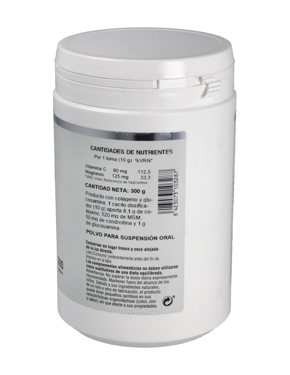 Complemento alimenticio elaborado a base de colágeno marino y magnesio, para beneficiar la salud muscular y articular. Especialmente indicado para mejorar el estado y la movilidad de las articulaciones. Aporta proteínas importantes para el buen funcionamiento del organismo, contribuye a aumentar y conservar la masa muscular y ayuda al mantenimiento de los huesos en condiciones normales. Ayuda a mejorar la salud de la piel, uñas y cabello. No contiene azúcares añadidos, gluten ni lactosa.