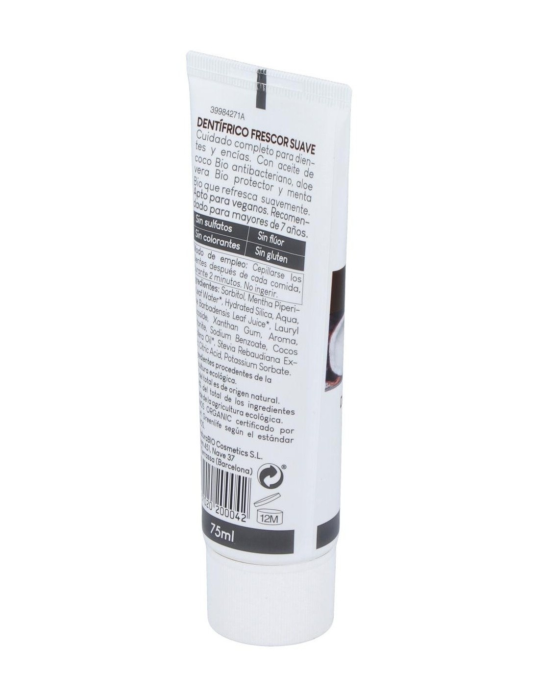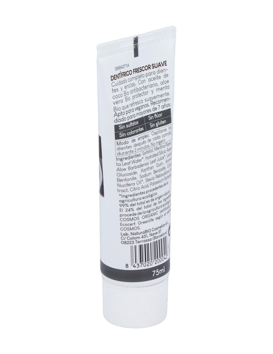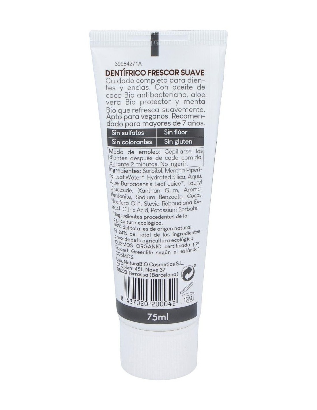 Dentifrico Frescor Suave Aloe-Coco 75Ml. Bio de Naturabio Cosmetics