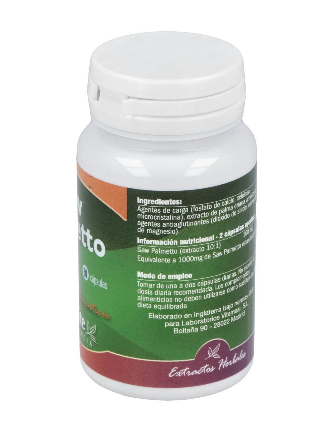Complemento alimenticio formulado con base de extracto de Saw palmetto, una planta enana de originaria del norte de México y sudeste de los Estados Unidos.? Este componente natural presenta una notable acción diurética y antiséptica. Fortalece la musculatura de la vejiga y favorece la eliminación de toxinas por la orina.