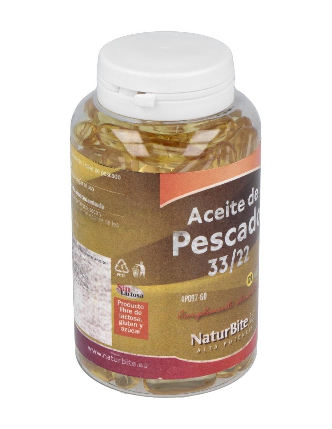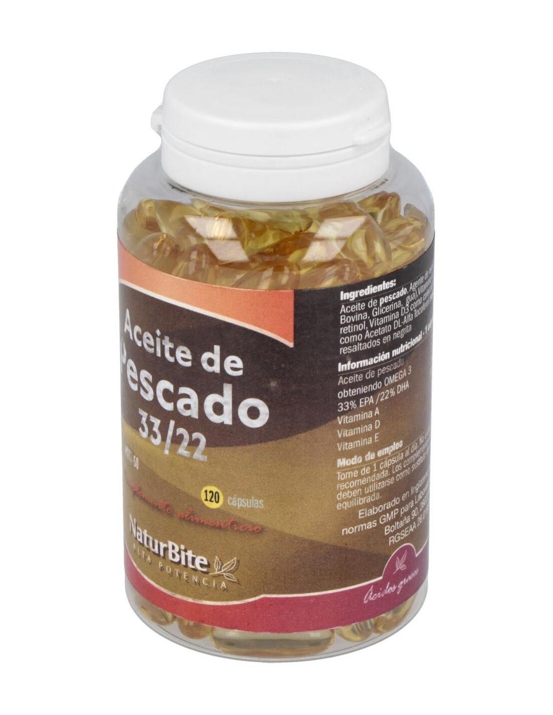 NATURBITECápsulas de aceite de pescado obtenido de atún, salmón, fletán, caballa y bacalao procedentes del Atlántico Sur, rico en omega 3, grasa necesaria para el fortalecimiento de las neuronas y demás funciones del organismo. Además favorecen la salud cardiovascular, reduciendo el riesgo de sufrir afecciones relacionadas con el corazón.